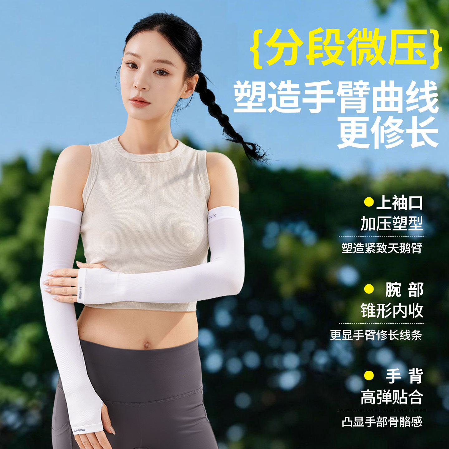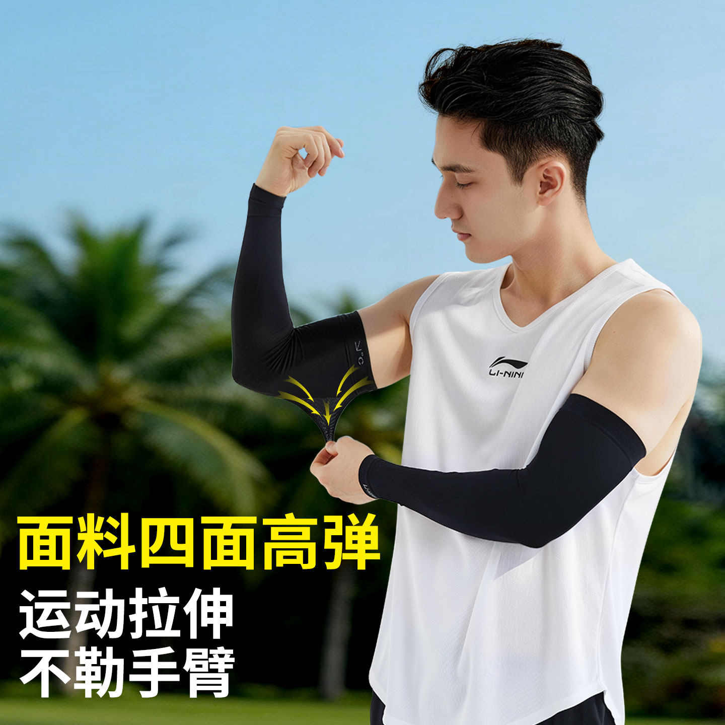 📚 李宁冰丝凉感冰袖夏男士连手高倍防晒开车防紫外线手套女护臂袖套
