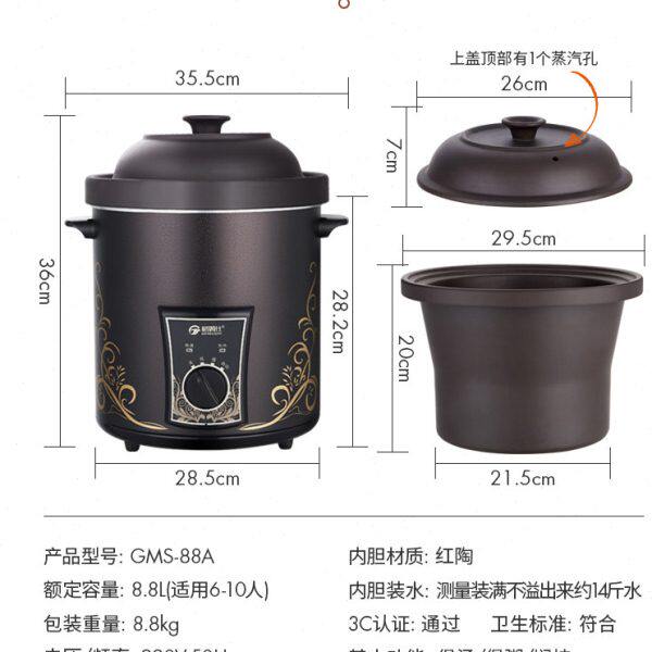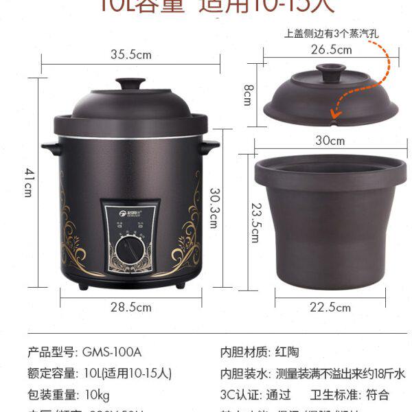 📚 格姆仕紫砂锅电炖锅红陶电砂锅10L商用大容量煲汤煮粥锅文火免看