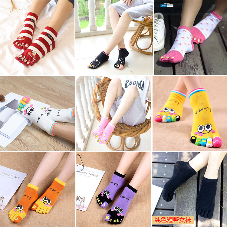 📚 五指袜女短筒船帮五趾袜子春夏全棉卡通可爱运动潮流透气女袜包邮