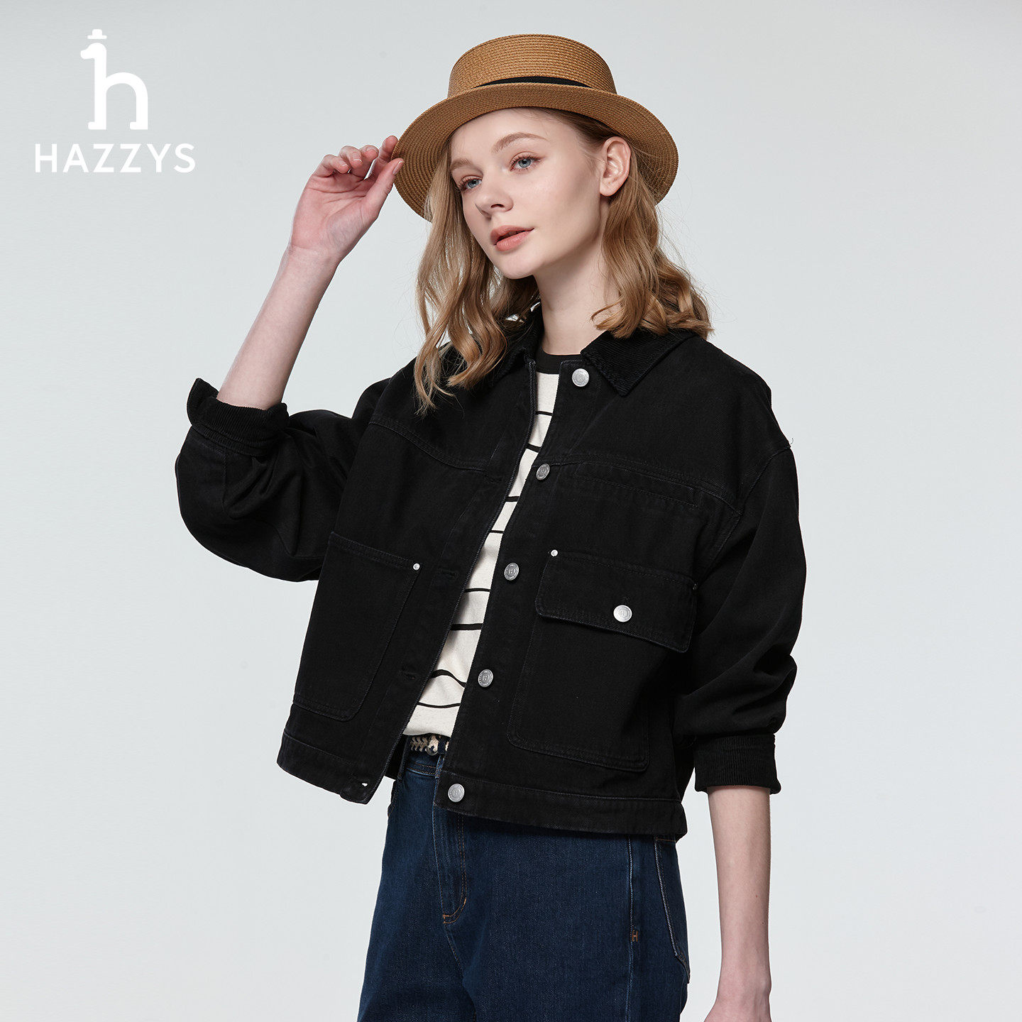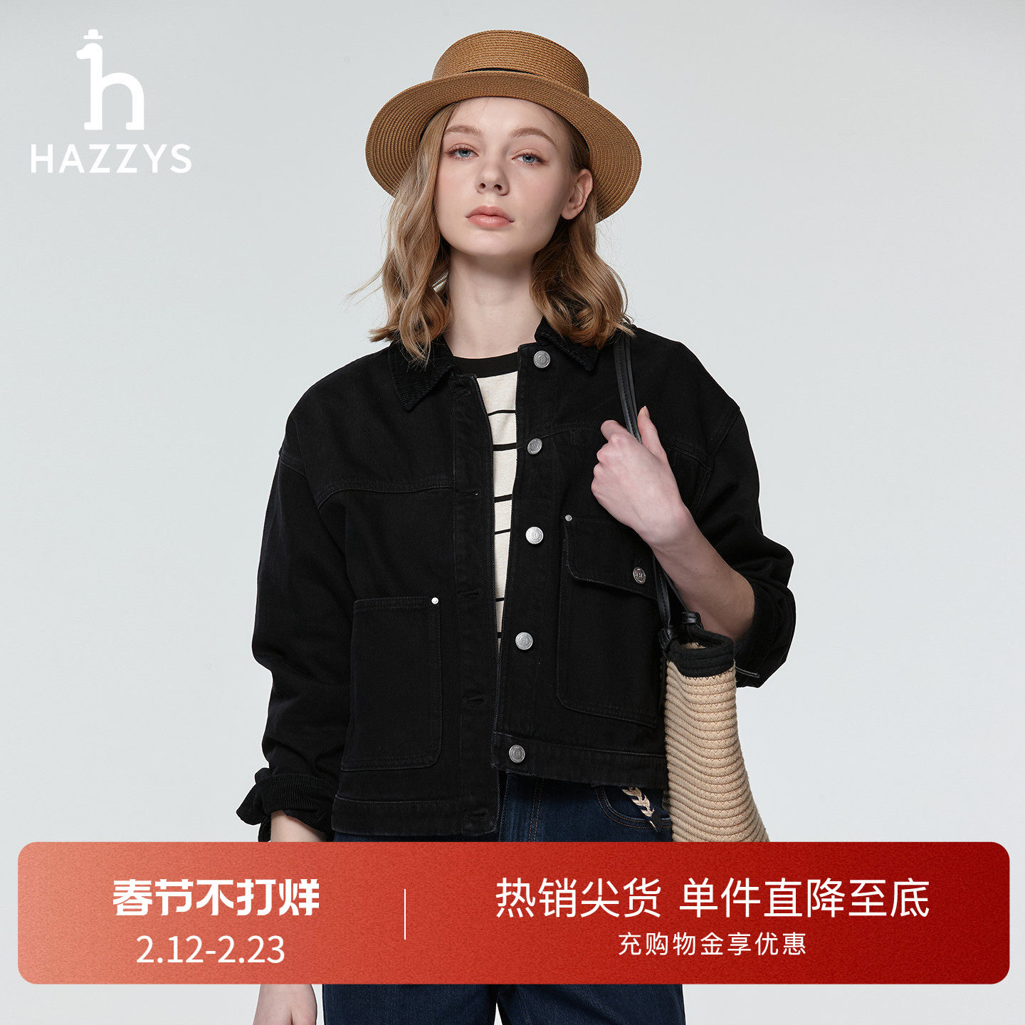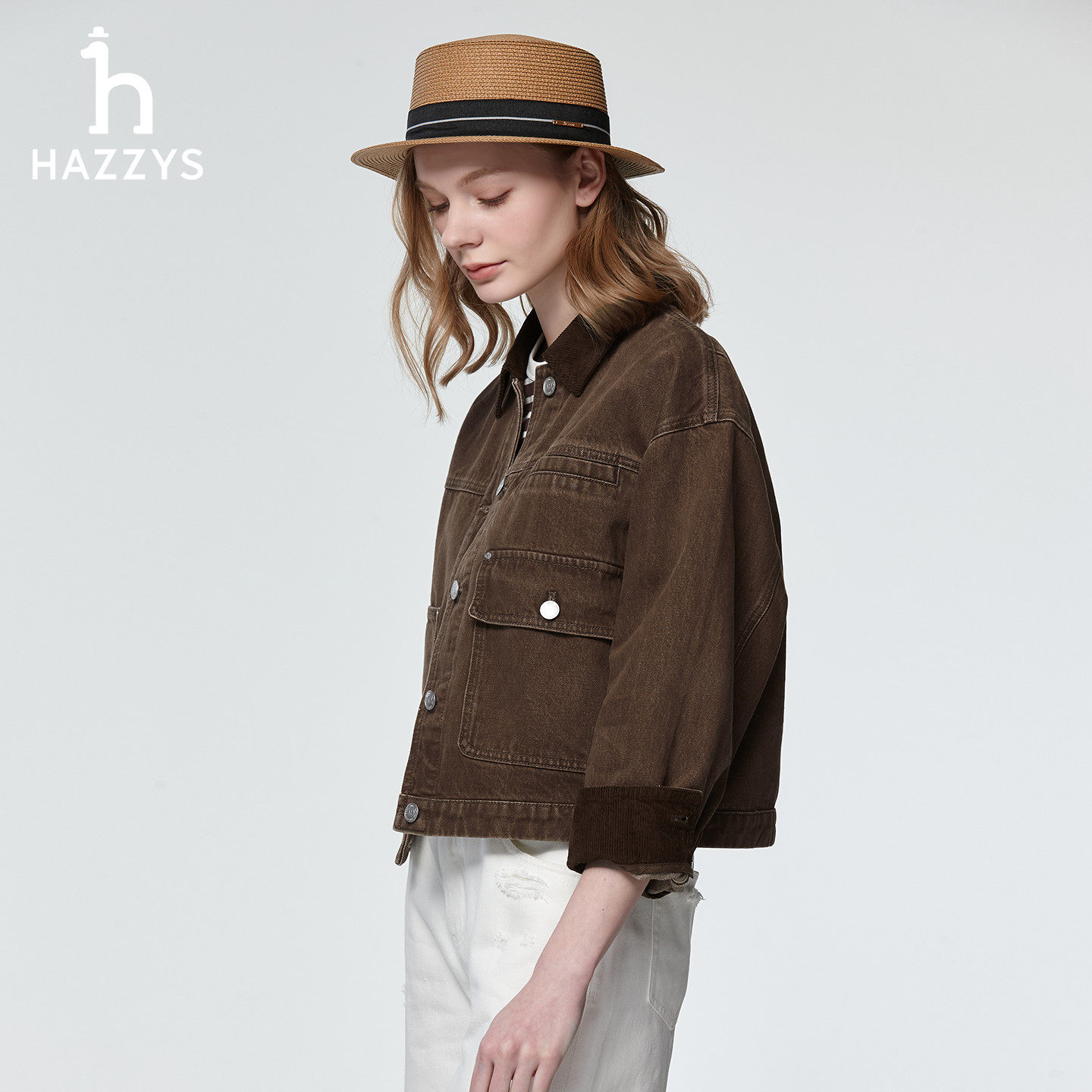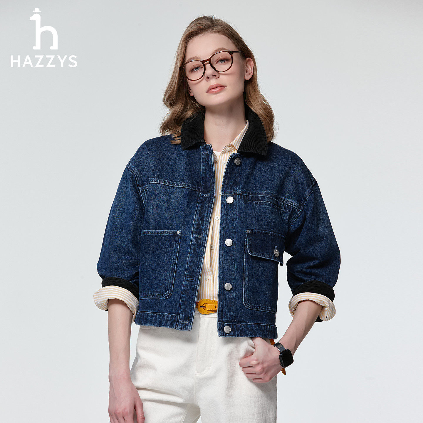 📚 Hazzys哈吉斯牛仔夹克女春季时尚潮流宽松复古灯芯绒拼接翻领外套