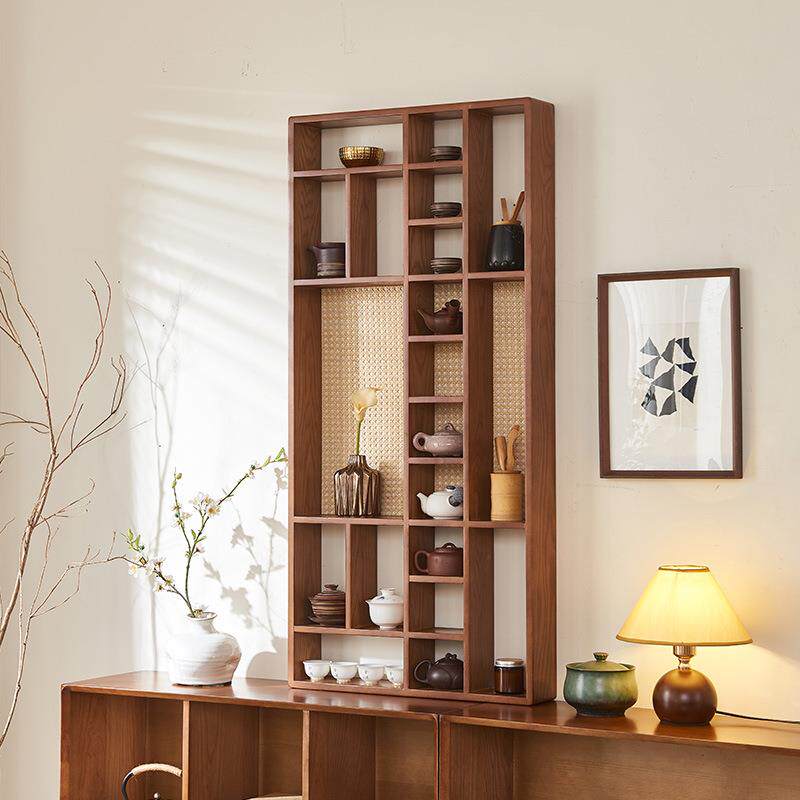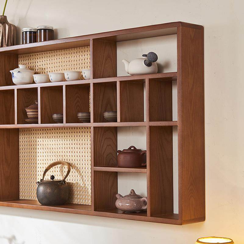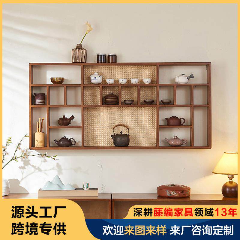 📚 茶室摆件展示架实木藤编置物收纳展示茶杯茶宠架挂墙多宝格博古架