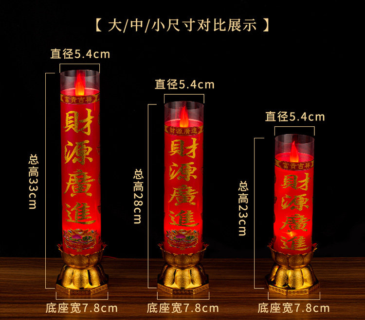 💡使用体验方面,这款蜡烛灯的使用非常方便。只需要轻轻一按开关,就可以点燃蜡烛,而且它的亮度可以根据需要进行调节。无论是家中供奉财神爷、乔迁新居还是祈求平安吉祥,它都能为你带来温暖和祥和的氛围。