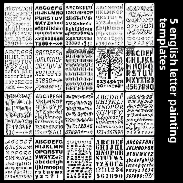 📚 20英语字母数字集覆制绘画模板尺子DIY个性化字母组合蕾丝尺子裁