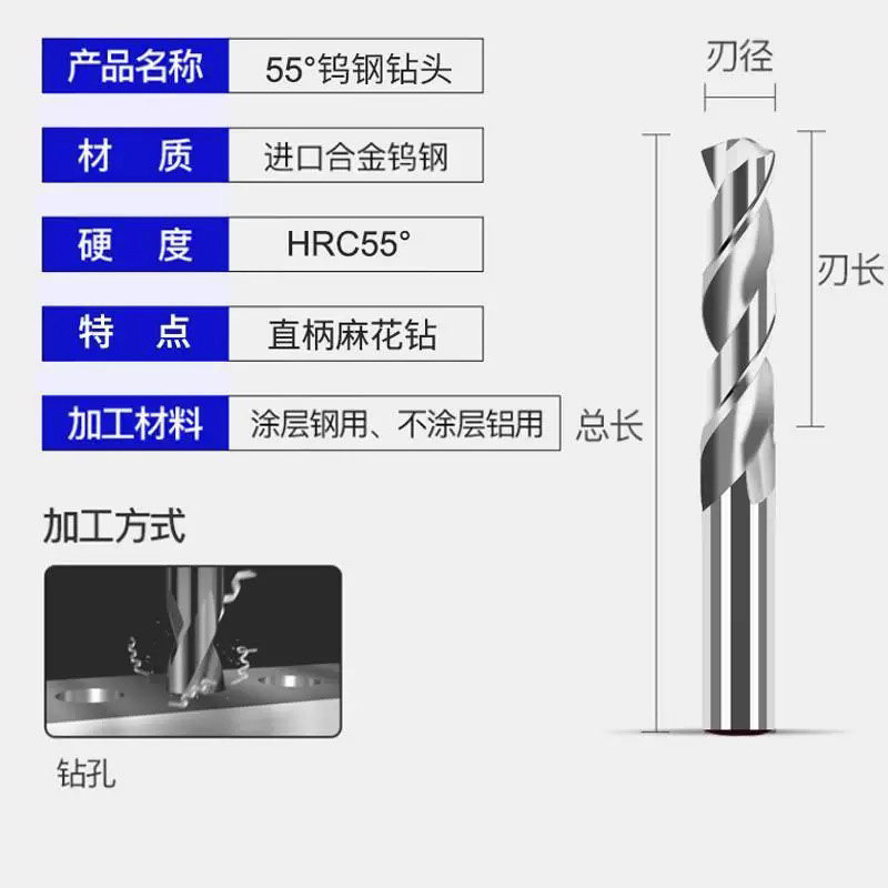 📚 55度钨钢铜铝专用钻头小数点0.5-26mm直柄整体乌钢麻花钻