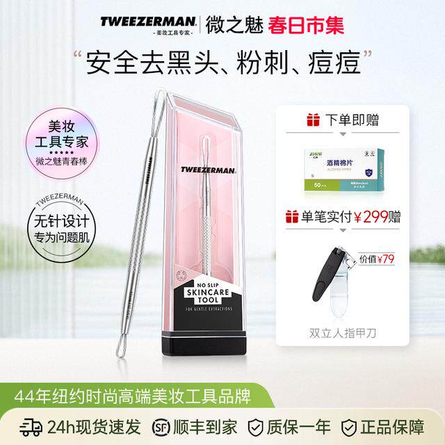 📚 TWEEZERMAN微之魅专业粉刺针去黑头痘痘闭口工具双头防滑款细胞夹