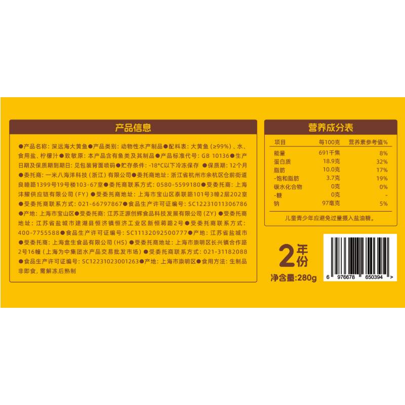 📚 一米八深远海大黄鱼新鲜冷冻不挂冰三去开背处理东海海鱼黄鱼