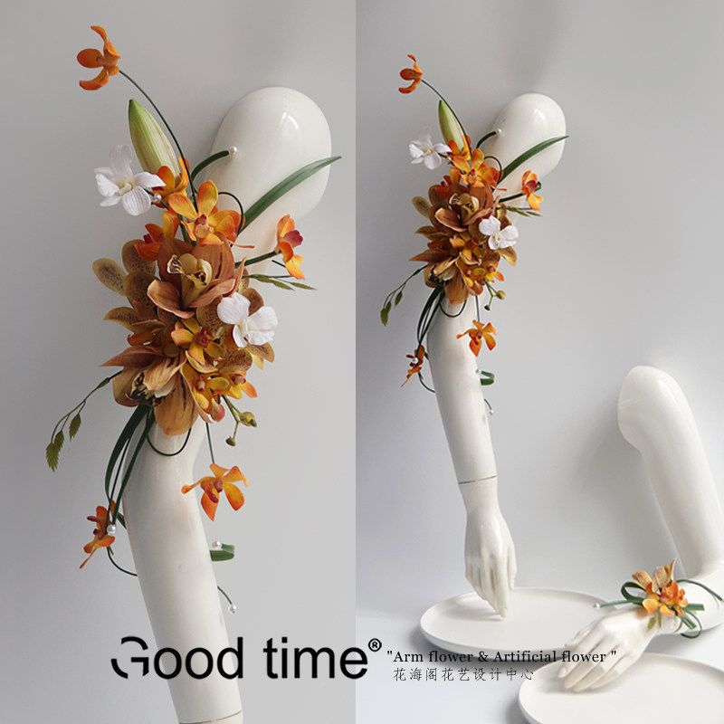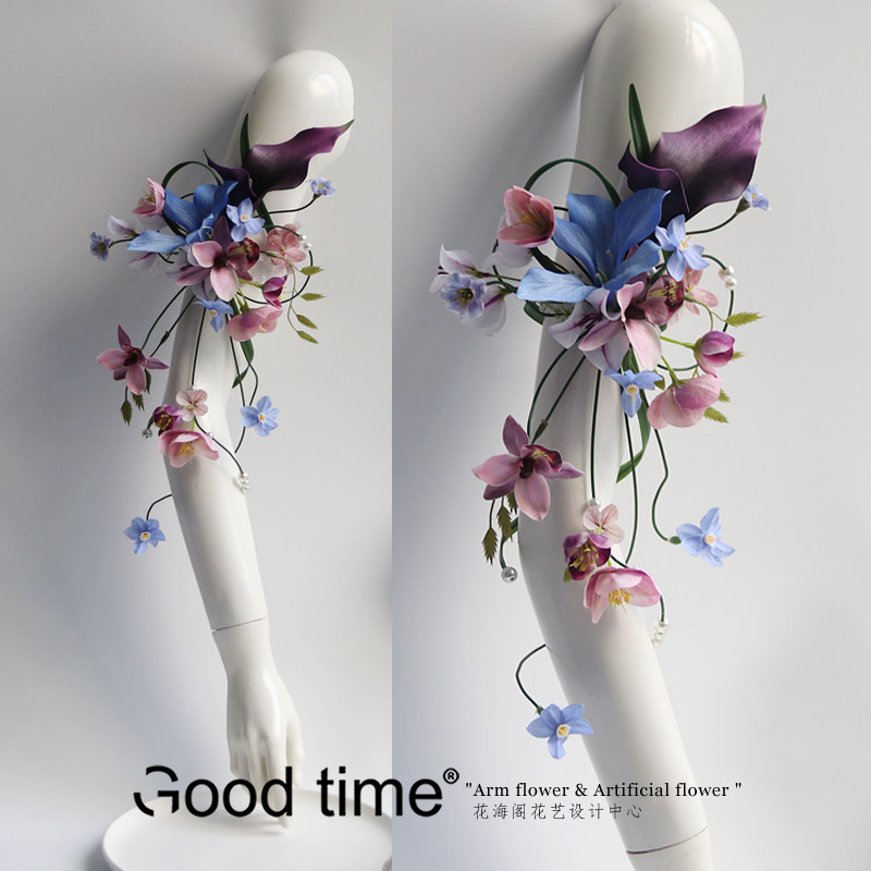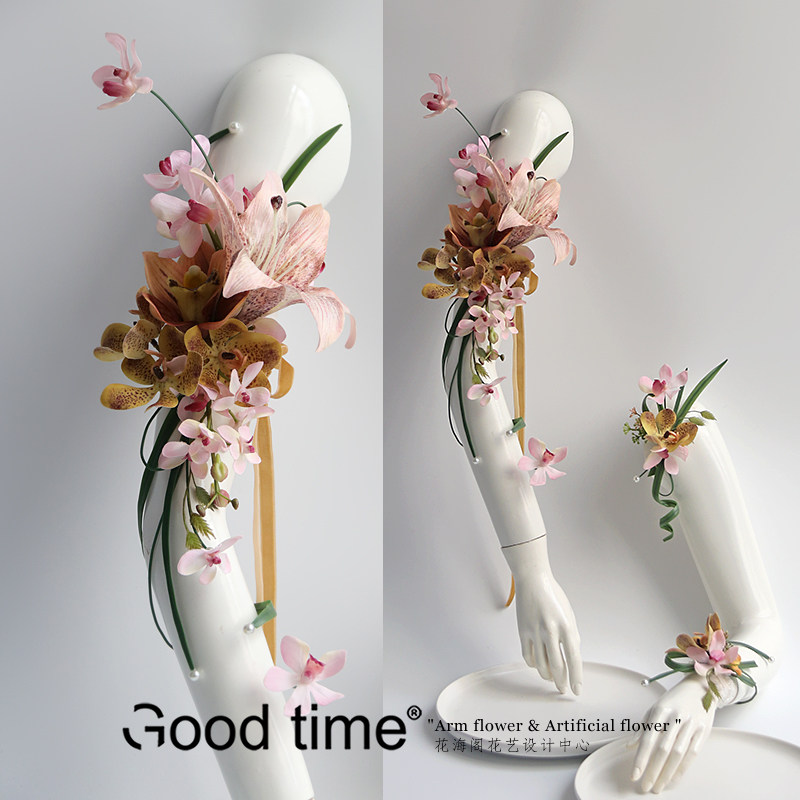 📚 手臂花儿一朵朵 臂环仿真花写真摄影结婚庆新娘领证拍照花艺 粉黄