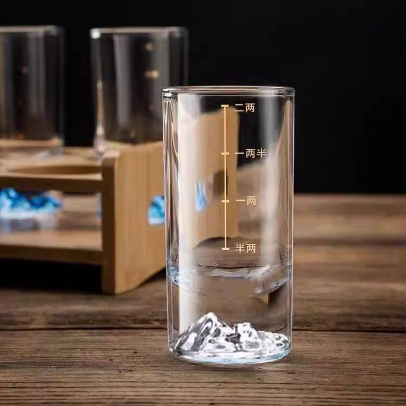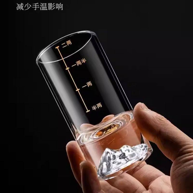 📚 二两冰山底白酒杯家用带刻度酒具高颜值酒盅招待烈酒杯中式玻璃杯