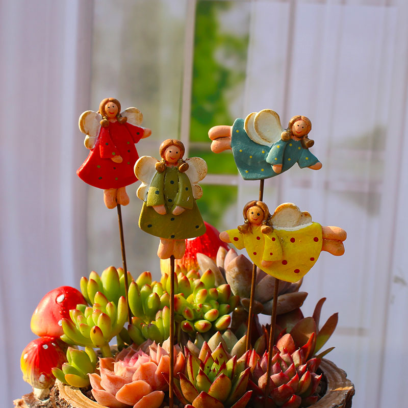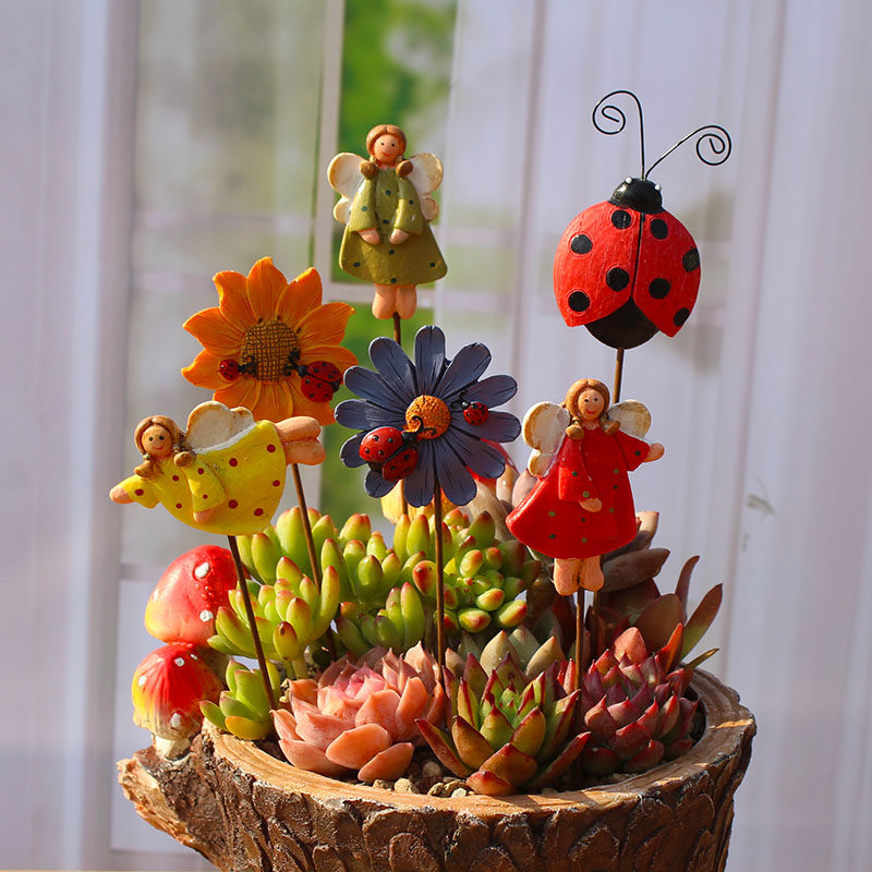 📚 花插牌小摆件多肉花盆里面的装饰盆景造景可爱女孩七星瓢虫微景观