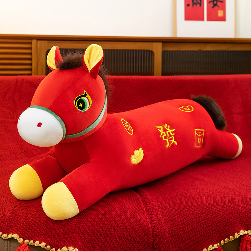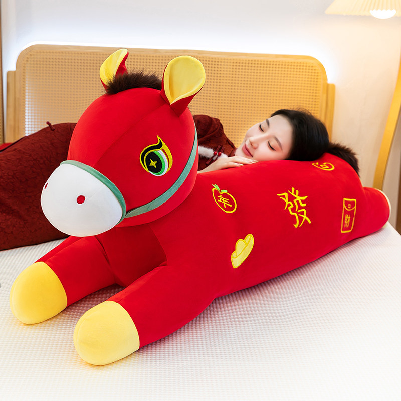 📚 2026本命年红色马毛绒玩具公仔新年抱枕大号好运长条玩偶抱枕女生