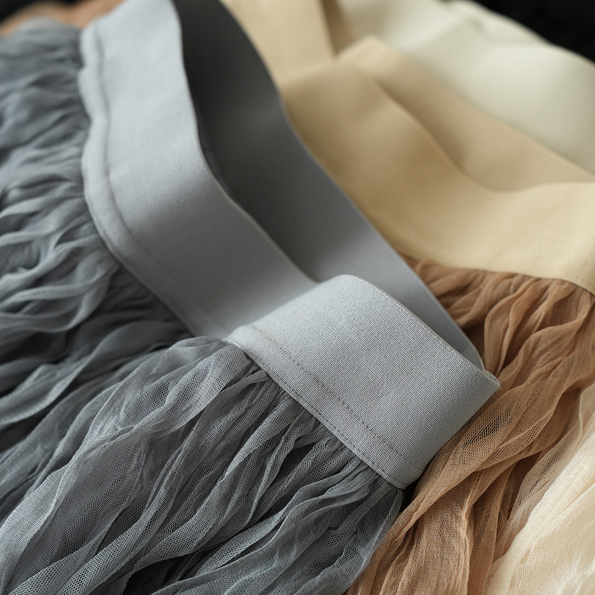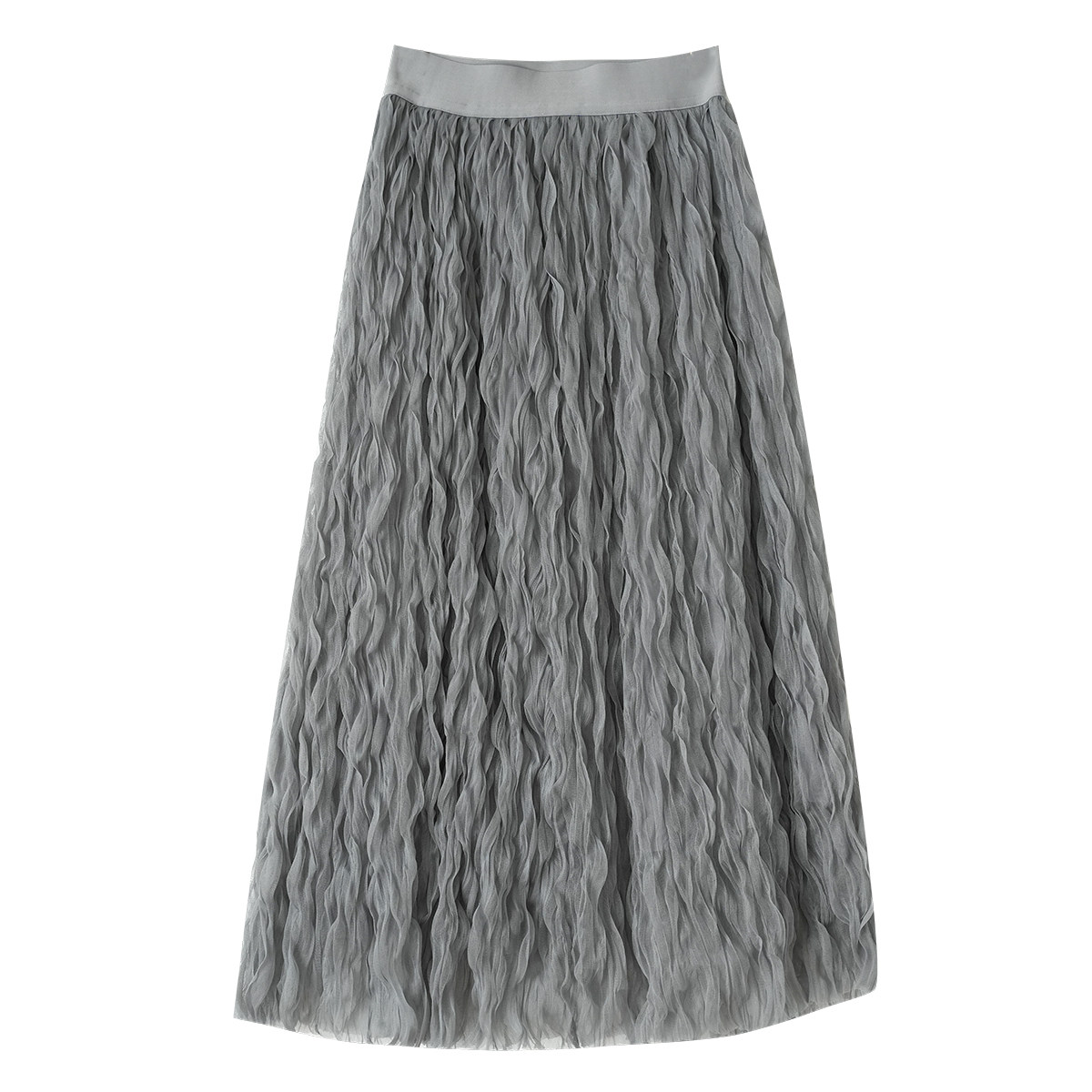 📚 波浪卷女士压褶网纱半身裙 氛围感纱裙高腰显瘦裙子春季新款女装