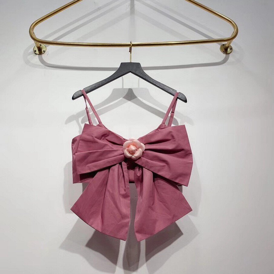 📚 jennie同款金智妮 夏季新品小香风立体花朵蝴蝶结吊带背心上衣女