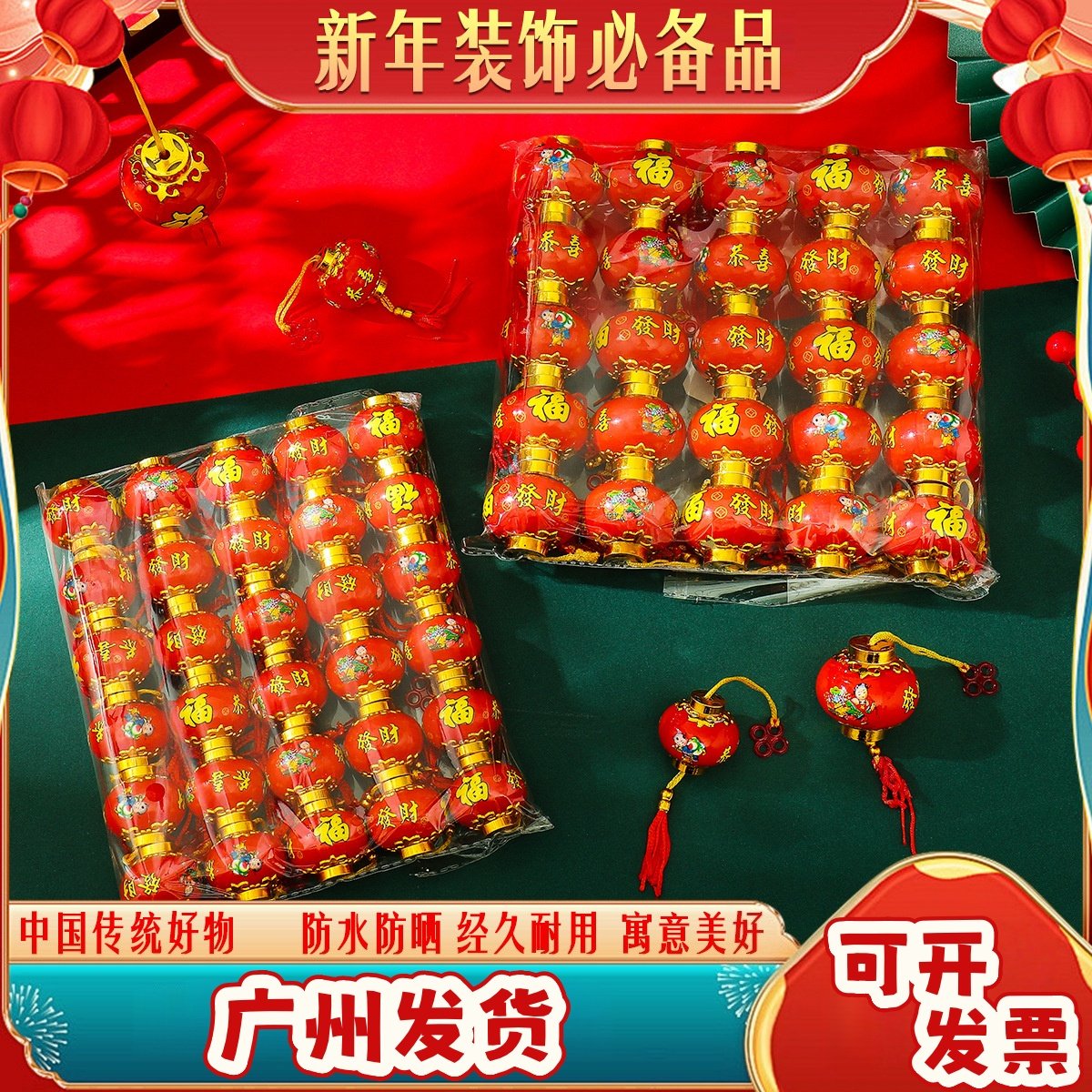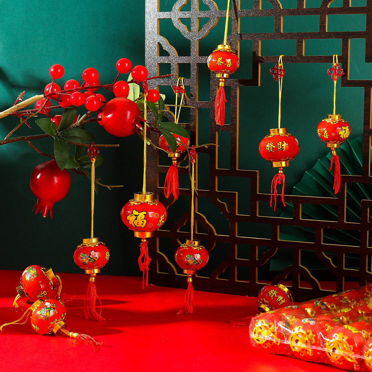 📚 马年新款塑料恭喜发财小灯笼防水防晒灯笼挂件结婚添丁小灯笼装饰