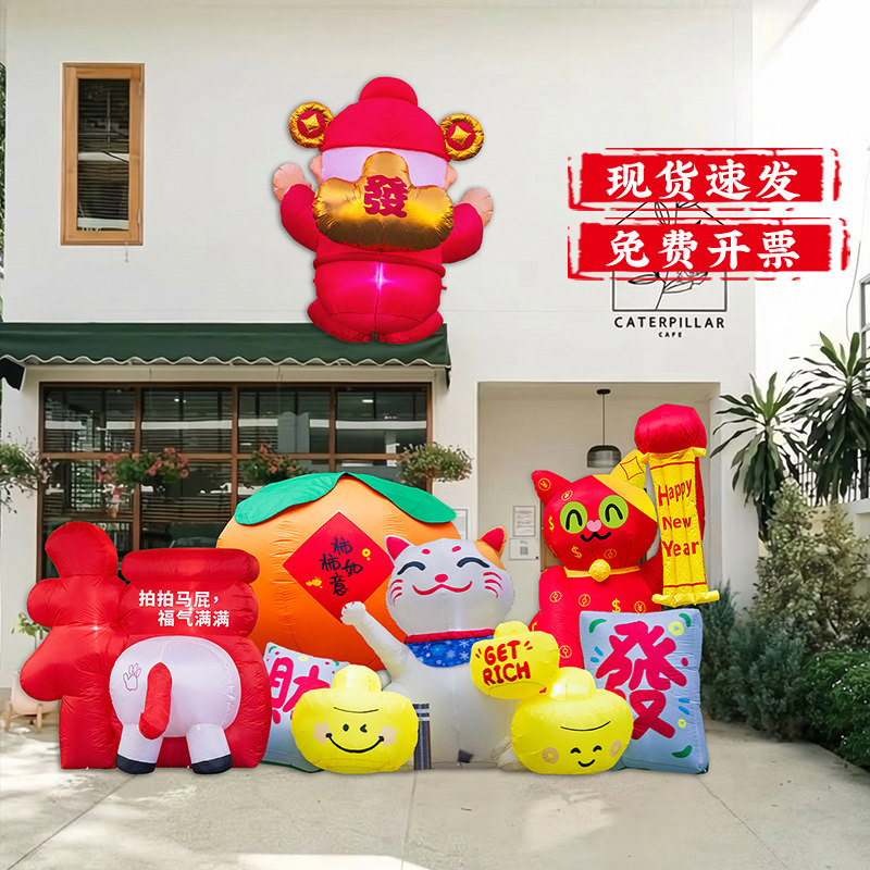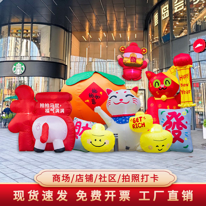 📚 2026新年装饰户外摆件福字拍马屁气模充气财神爷气球马年氛围布置