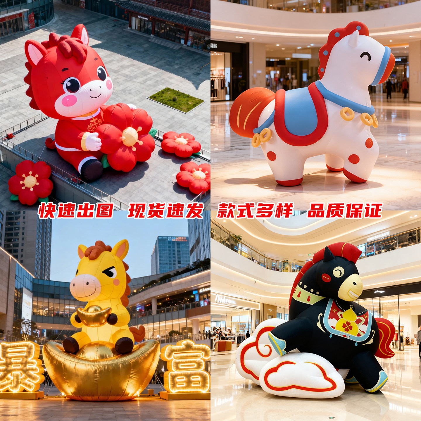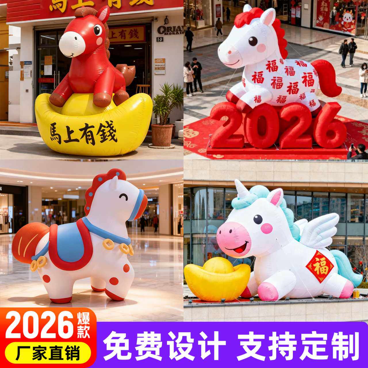 📚 2026马年气模定制卡通商场美陈充气拍马屁吉祥物表演道具厂家直销
