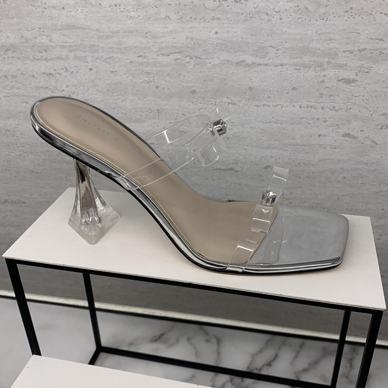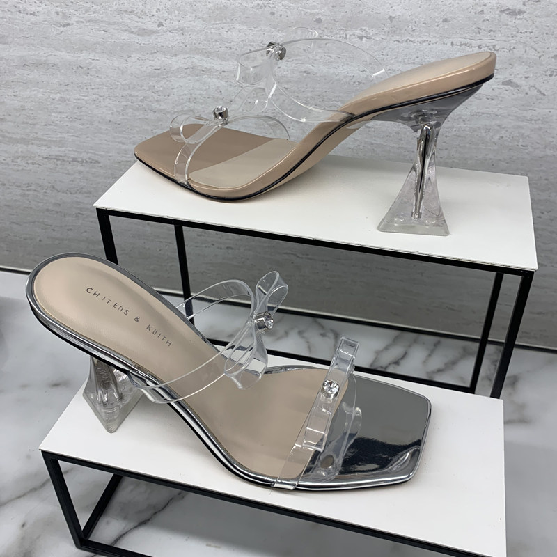 📚 CHITENS&KUITH 夏新款方头透明凉拖鞋异型高跟鞋蝴蝶结外穿女凉鞋