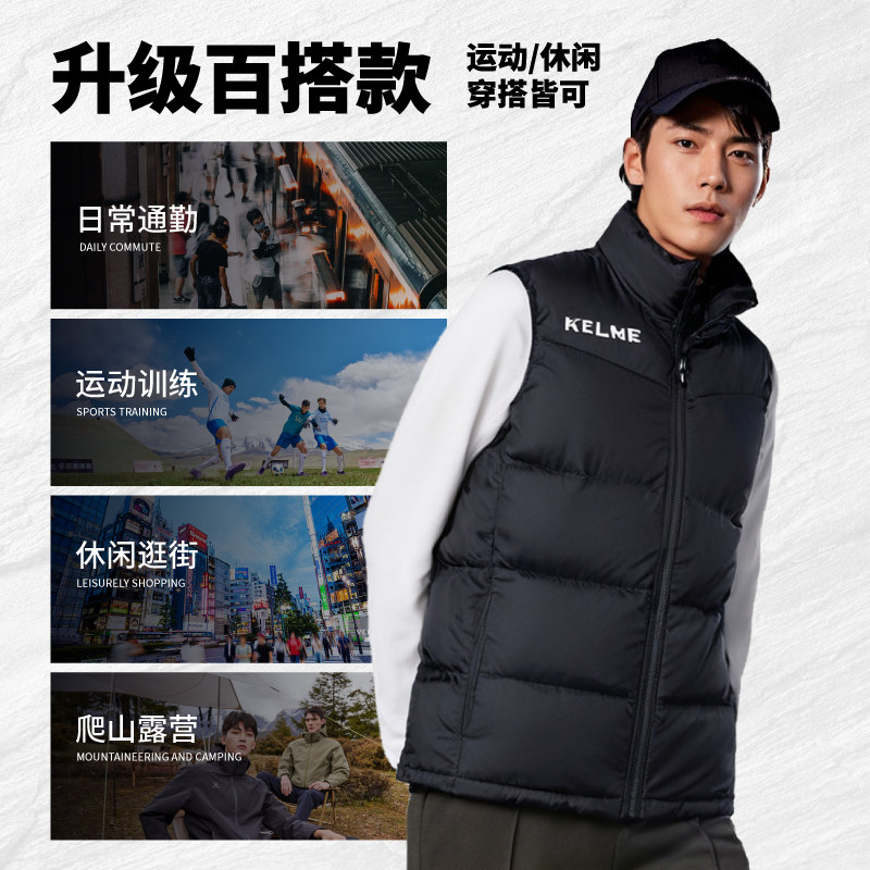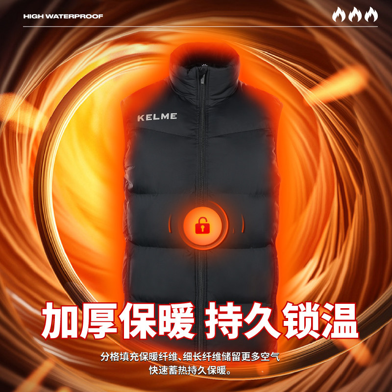 📚 KELME卡尔美运动马甲男冬训加厚羽绒棉背心坎肩棉服外套官网正品