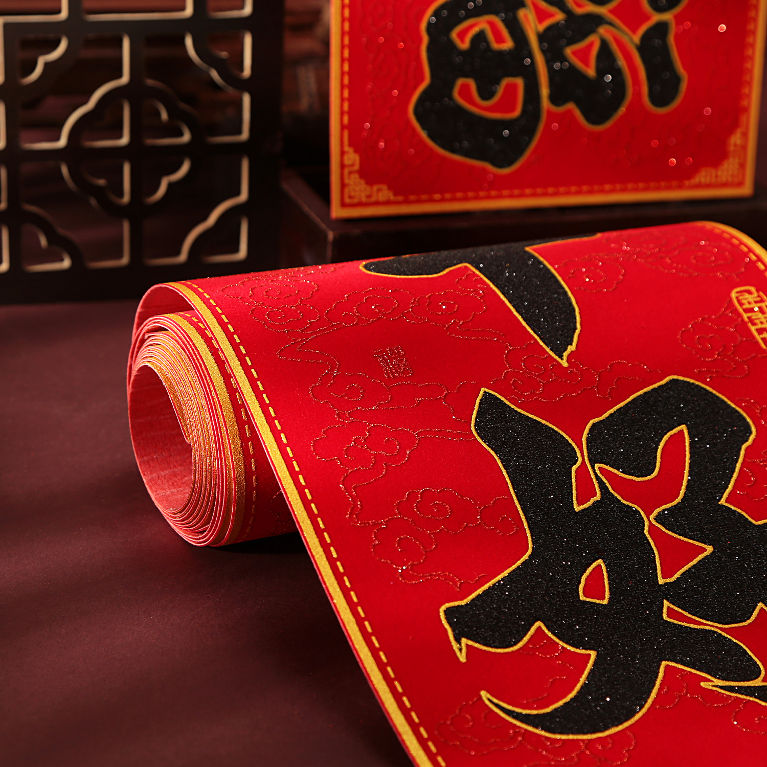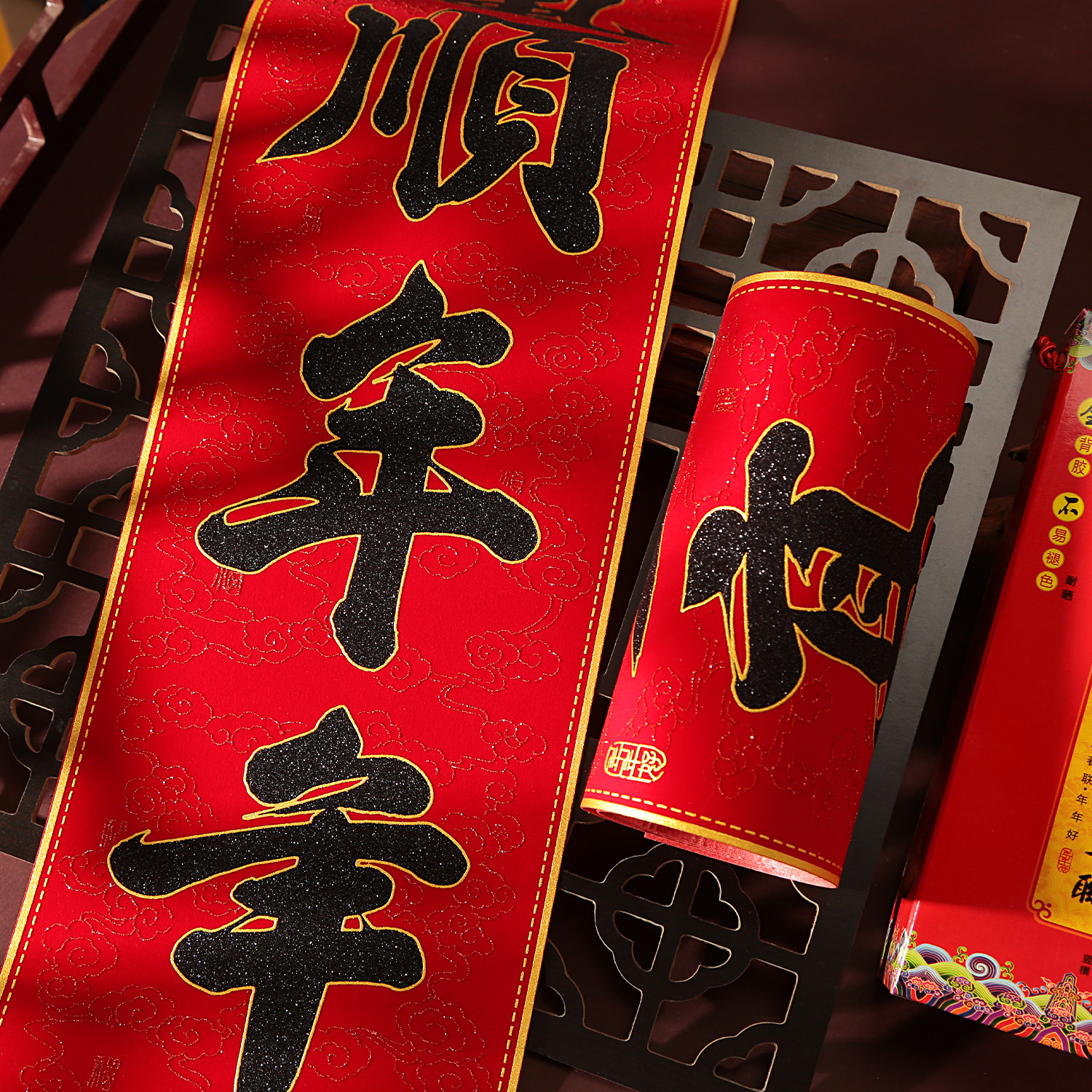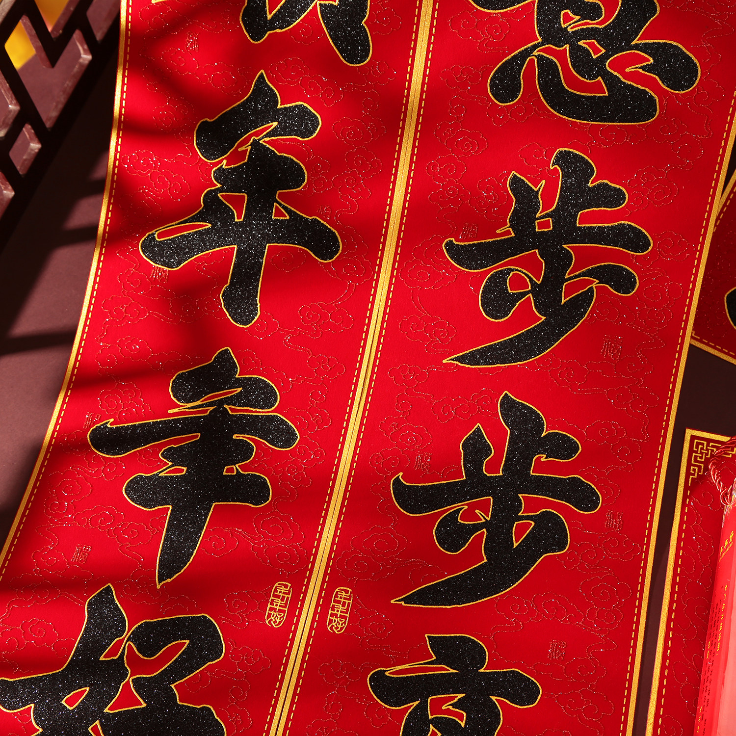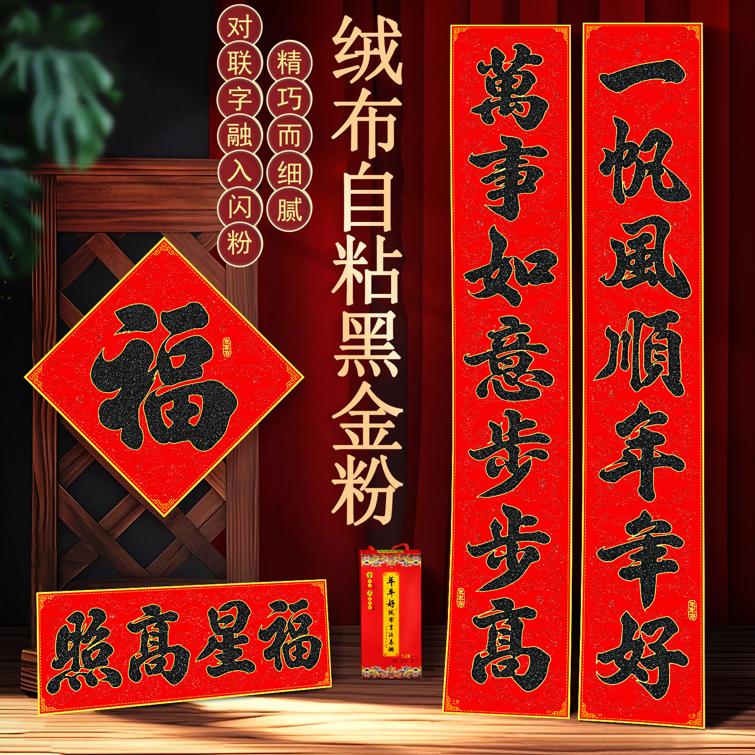 📚 2026新款马年对联绒布书法黑字金粉春联背胶家用生意福字大门贴纸