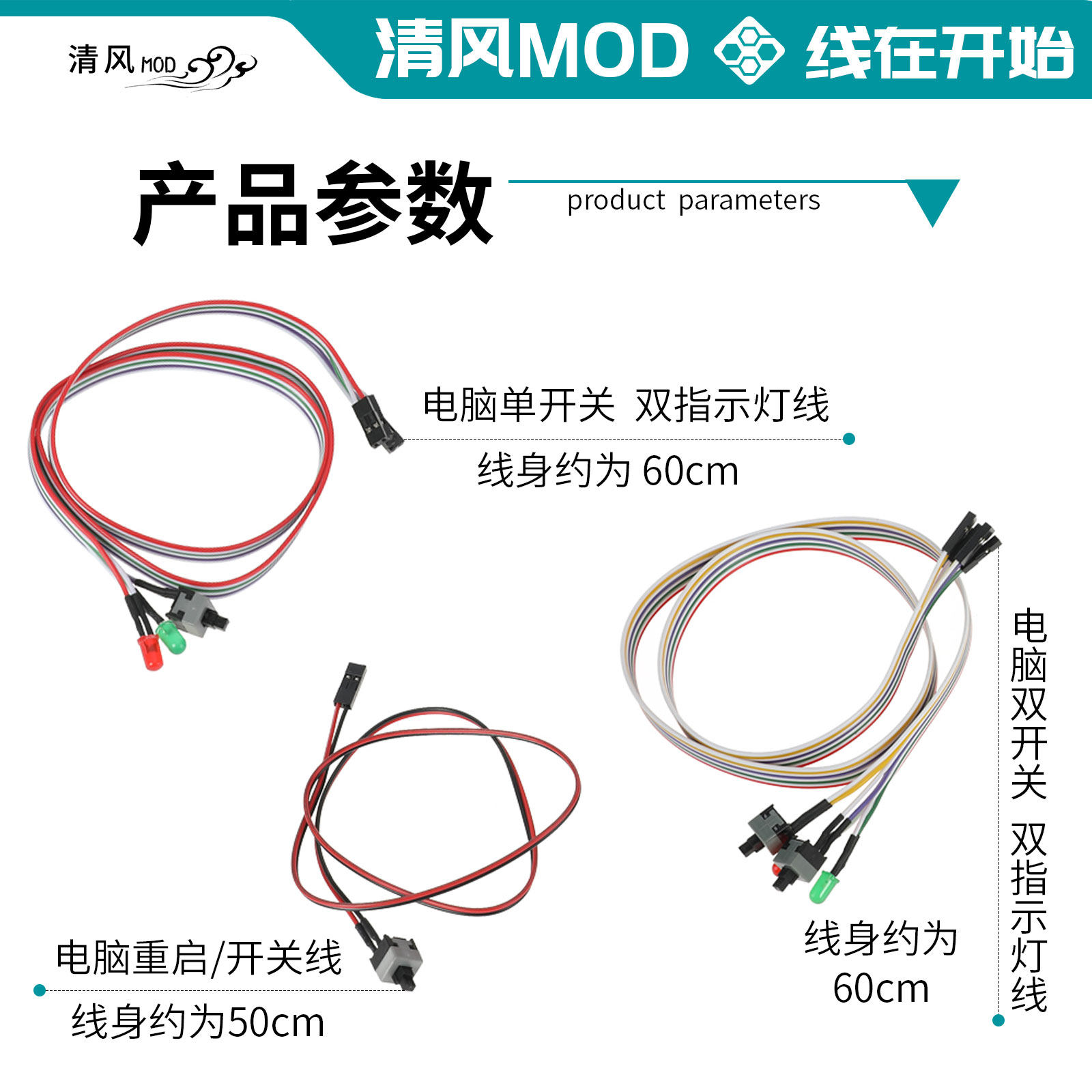 📚 机箱开机按钮台式机主机主板重启RESET键POWER单双带指示灯开关线