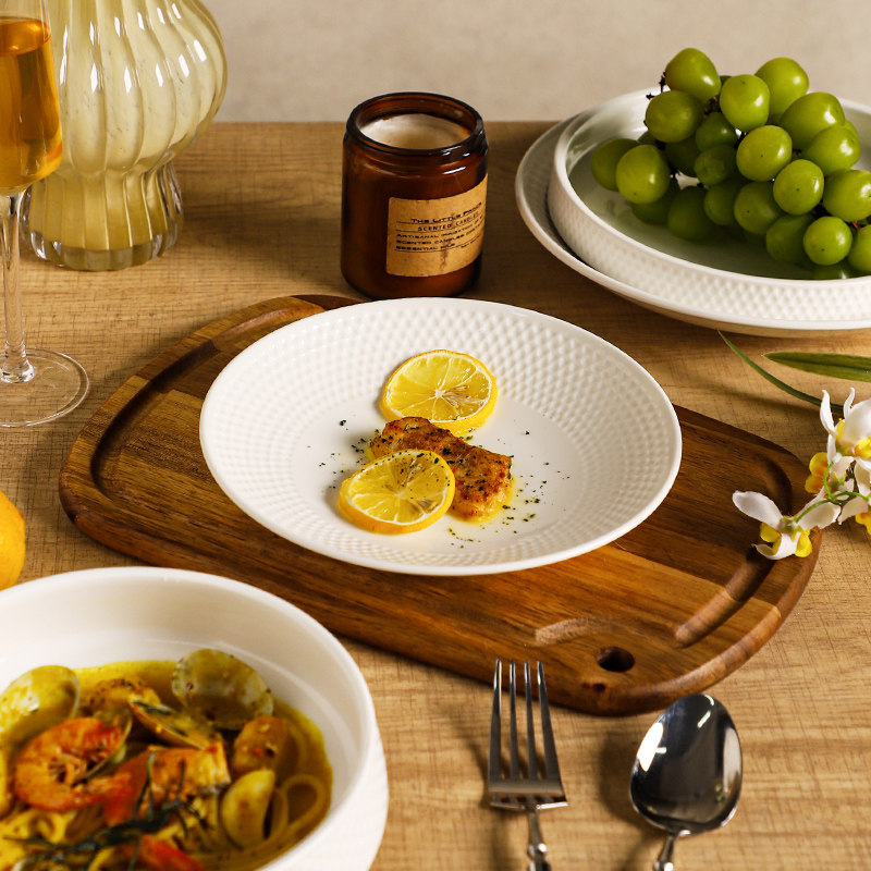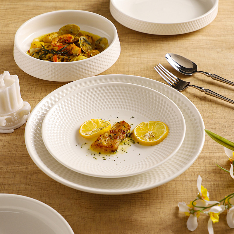 📚 舍里白色浮雕餐具高级感西餐餐盘家用汤碗菜盘子深盘牛排盘沙拉碗