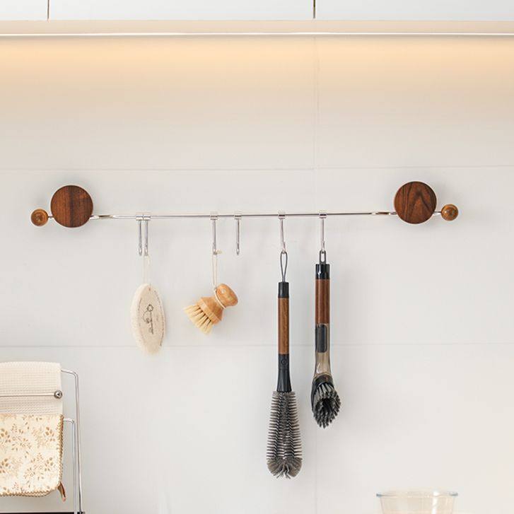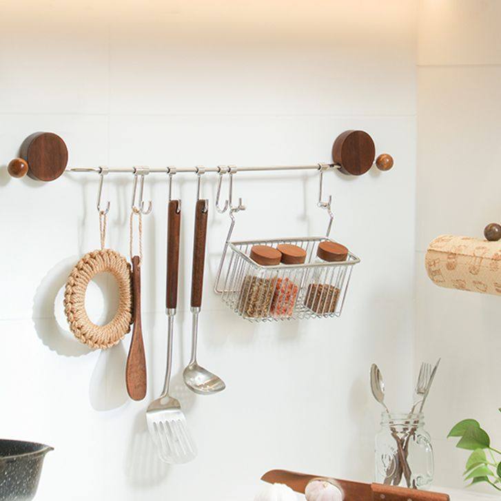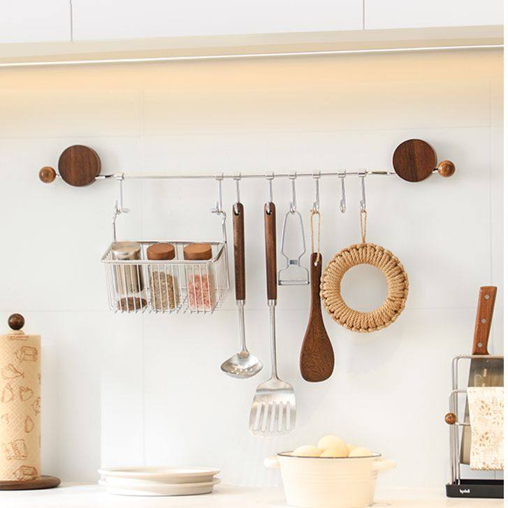 📚 中古风吸盘不锈钢联排可移动挂钩厨房铲子收纳强力承重挂杆置物架
