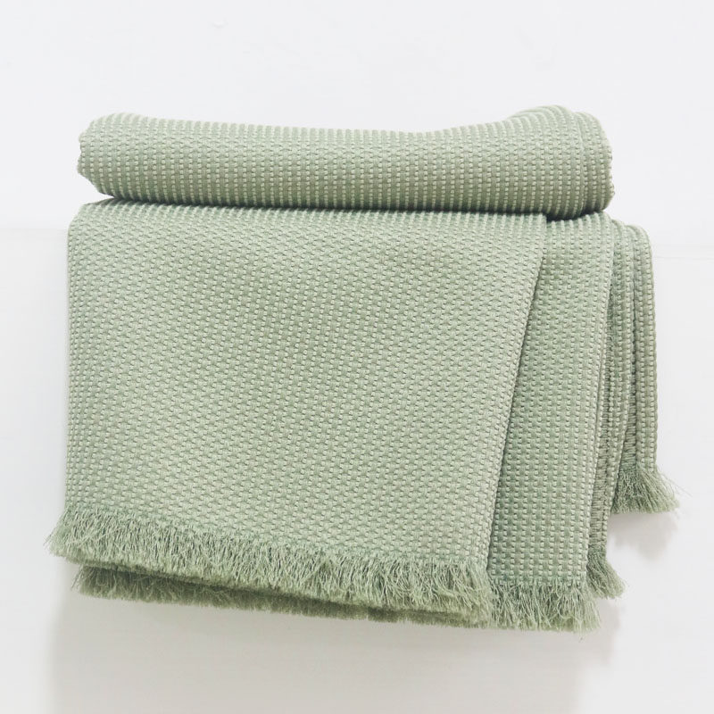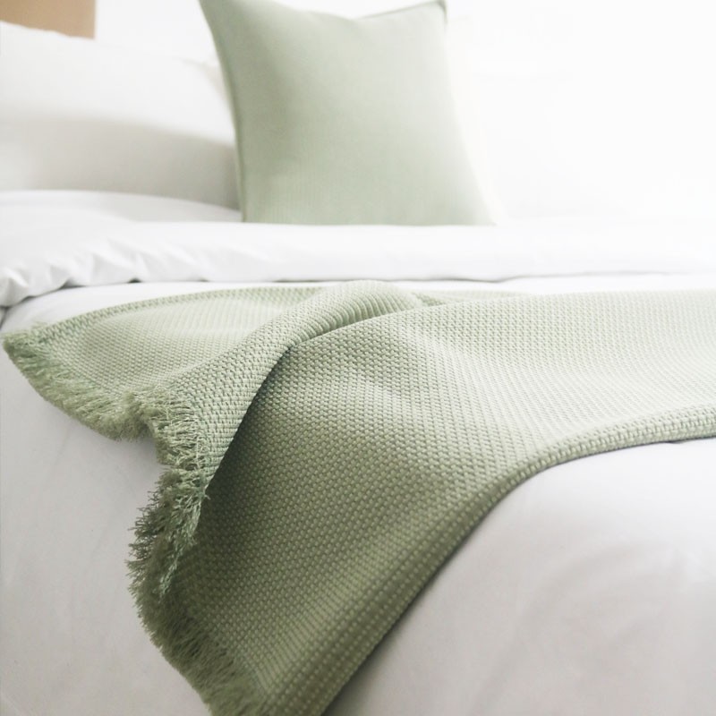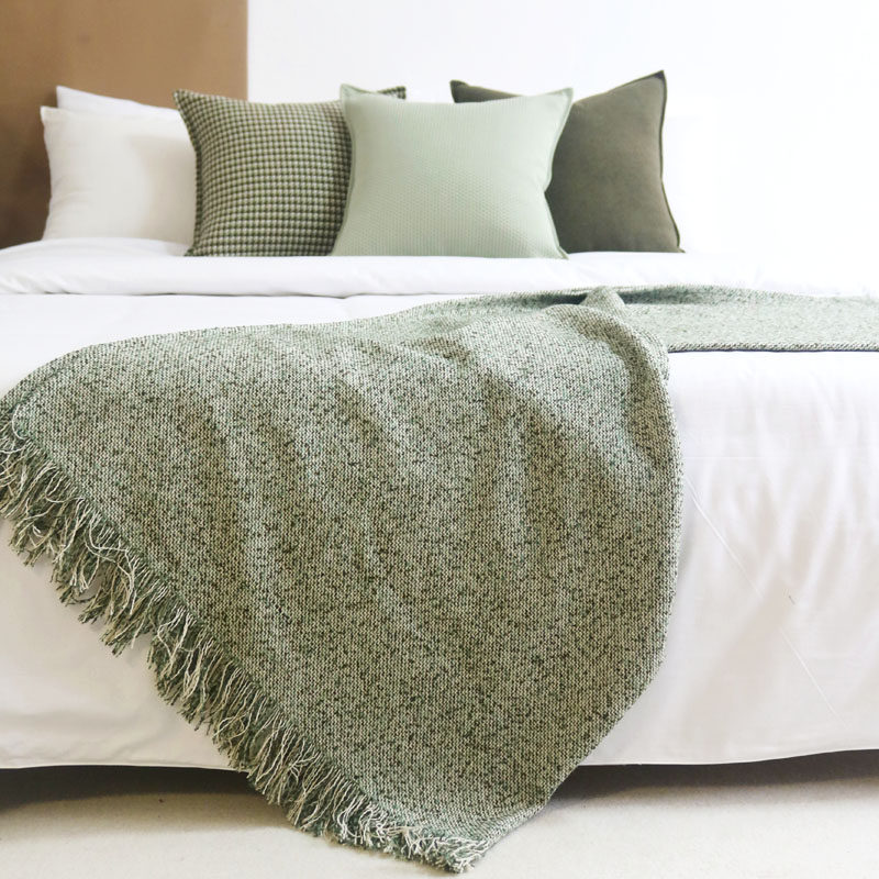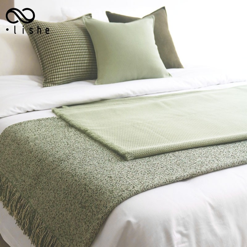 📚 复古床尾巾浅绿肌理床毯民宿床尾巾酒店床旗橄榄绿沙发毯拍照毯