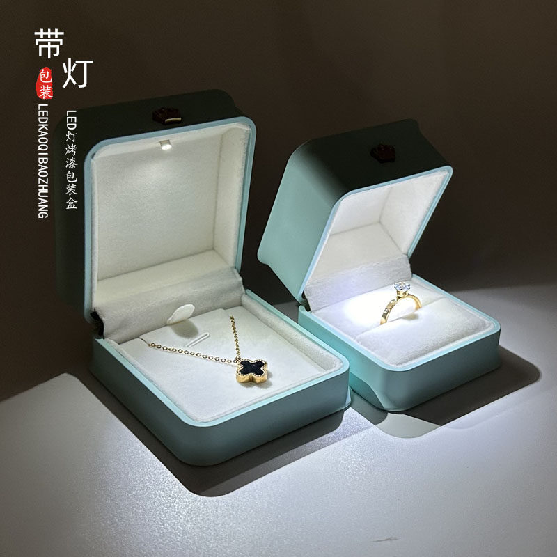 📚 高档带灯首饰盒led发光戒指盒婚礼对戒盒森系吊坠手镯耳坠耳钉盒