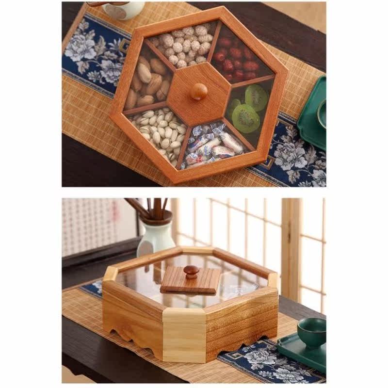 📚 2022 New Solid Wood Snack Box Chinese Style Divided Grid Dri