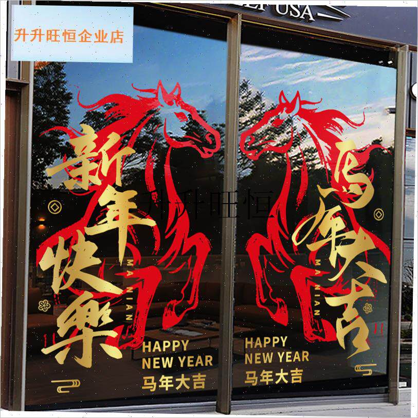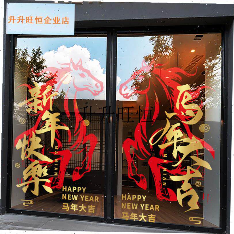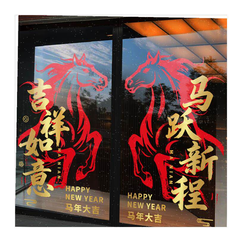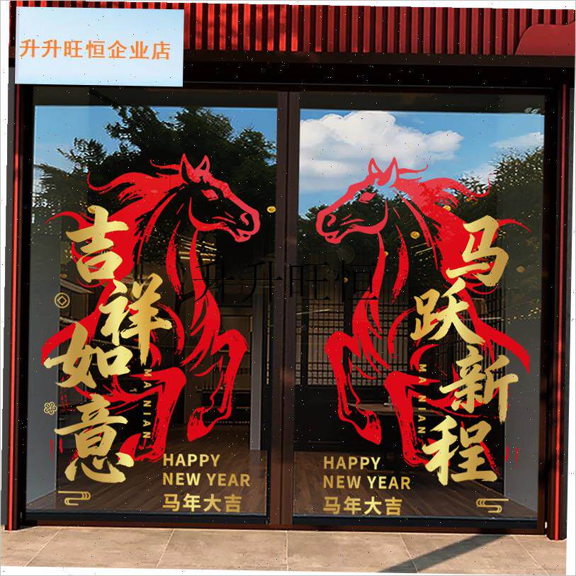 📚 年春节装饰品玻璃l门贴纸2026过年氛围静电商场新年窗花马到成功,