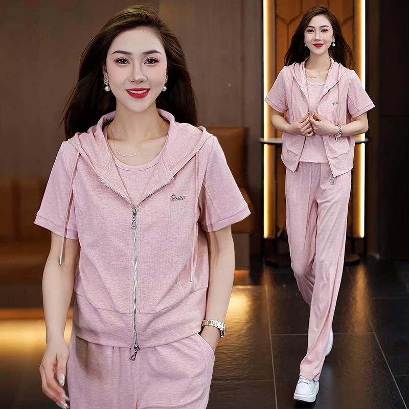 📚 运动套女夏季士新款时尚89825891宽装松洋气女短袖长休闲跑裤步两
