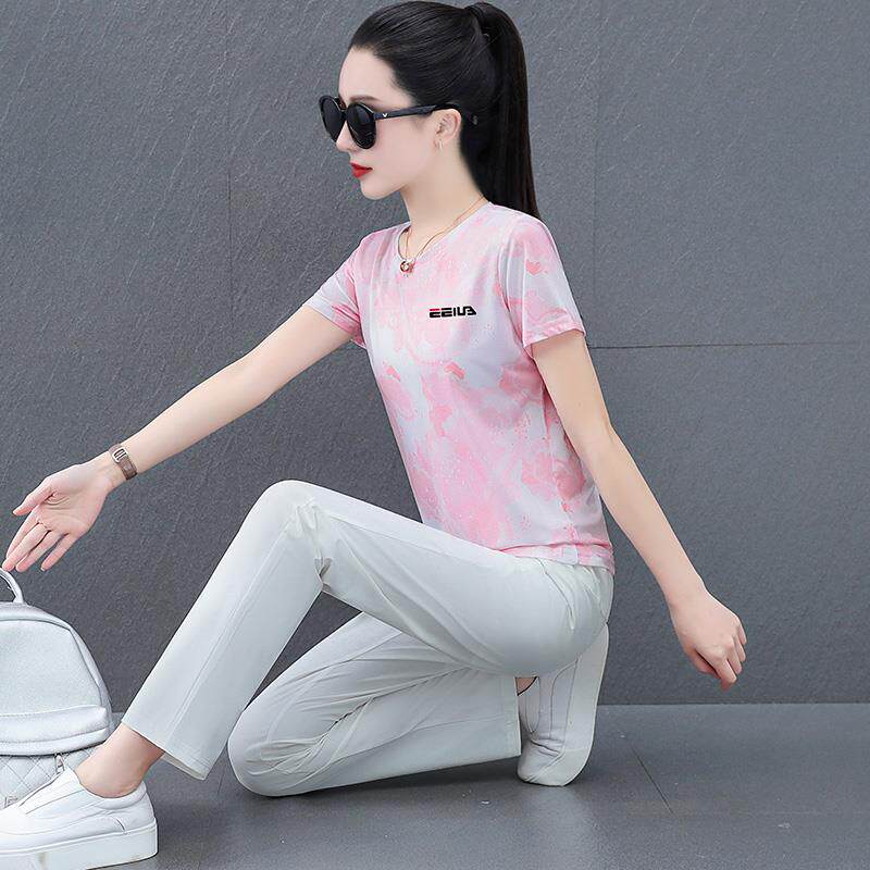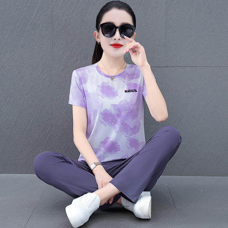 📚 速干套季装女夏妈妈品牌冰丝短袖跑服女两89941819士洋气时尚件步