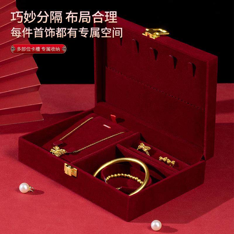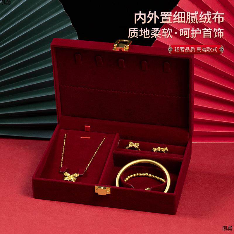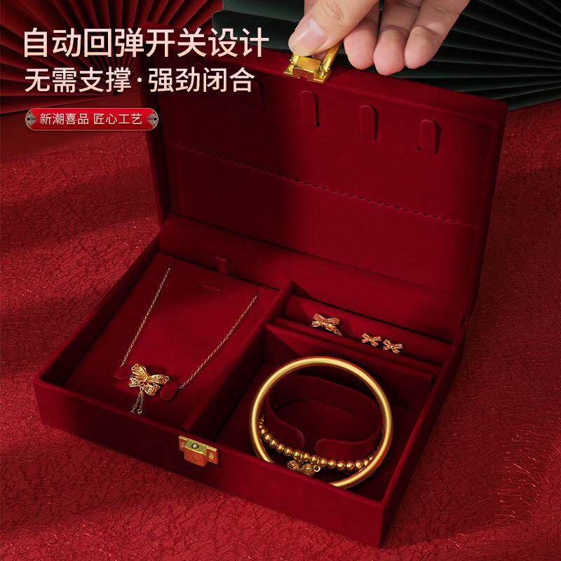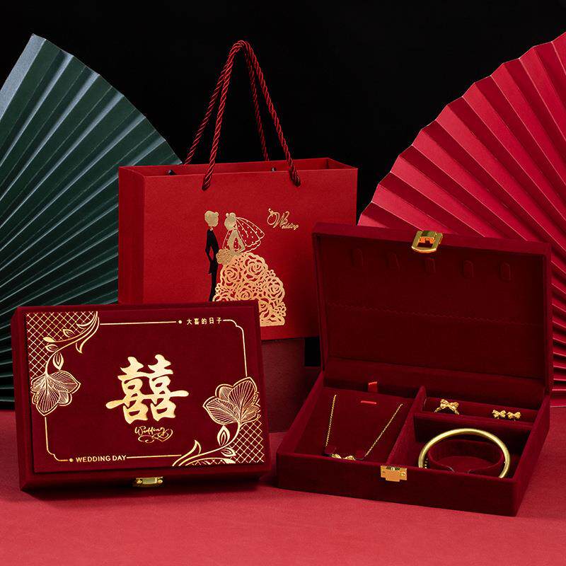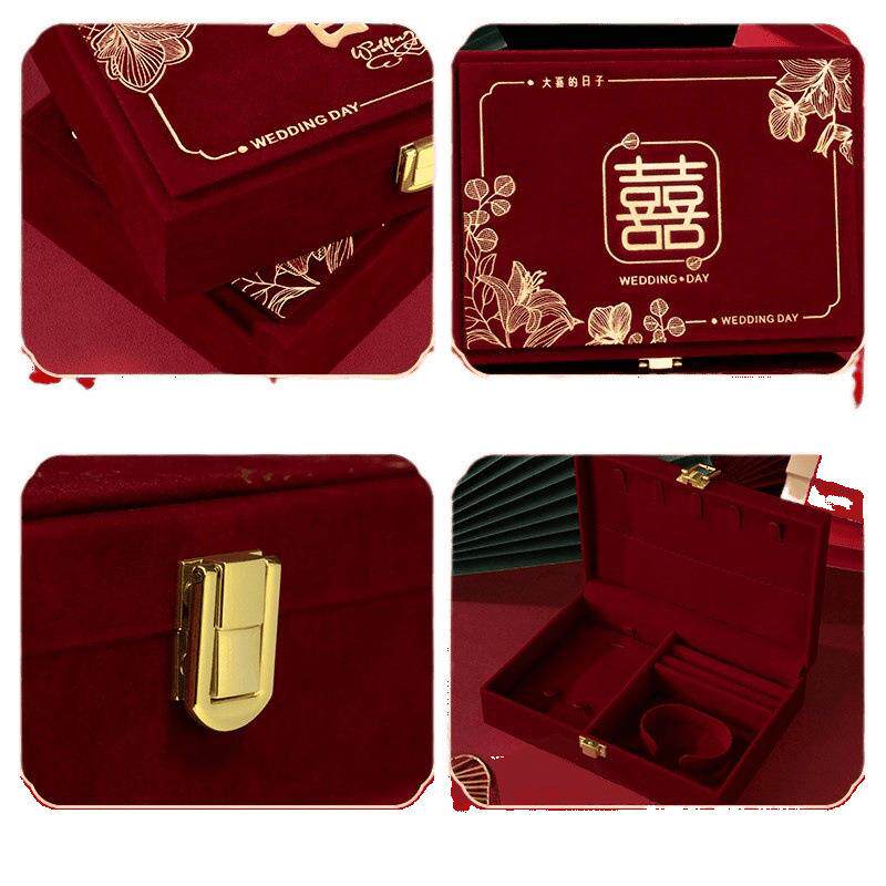 📚 订婚首饰盒男方金器结婚彩礼钱盒子酒红感婚礼三金五金盒