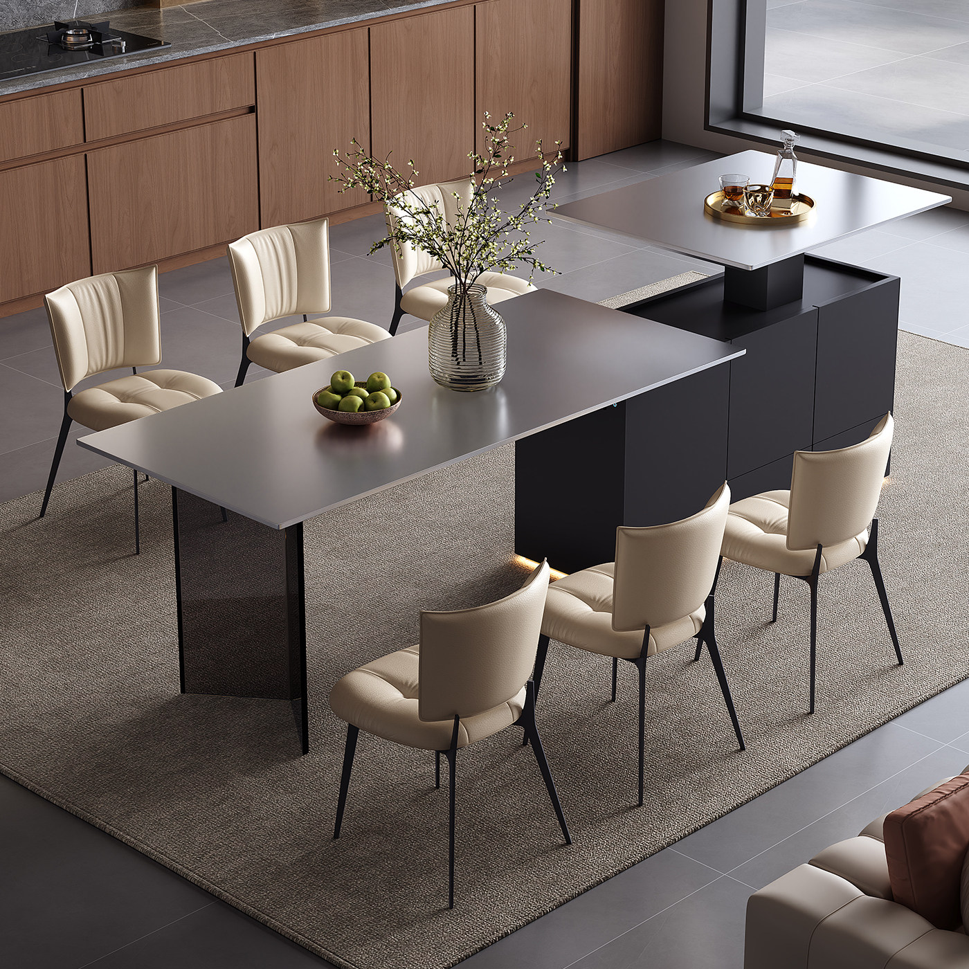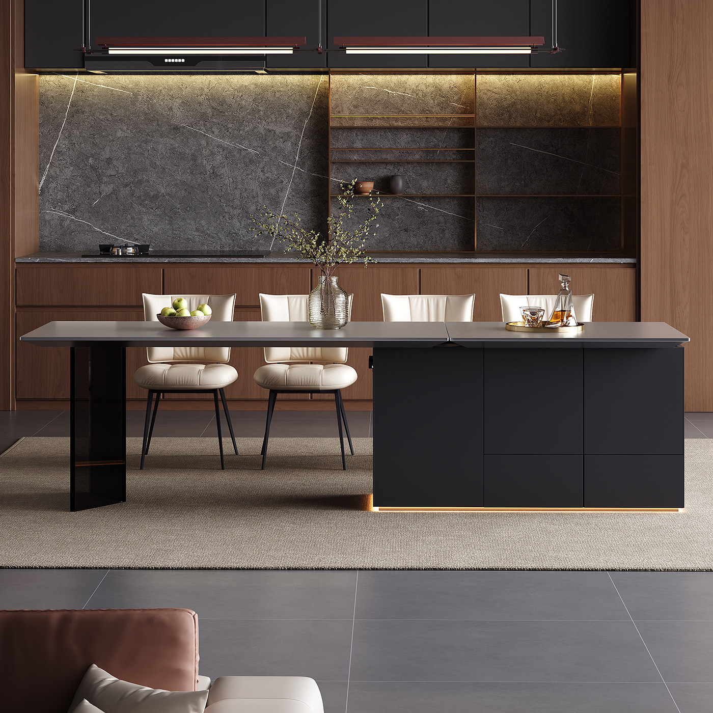 📚 不锈钢岛台餐桌齐平厨房餐厅多功能工作台定制电动升降岛台办公桌