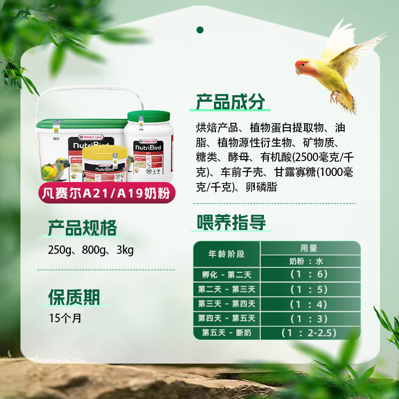 📚 【自营】凡赛尔鹦鹉幼鸟奶粉A21&A19奶粉800g比利时原装进口 鸿业