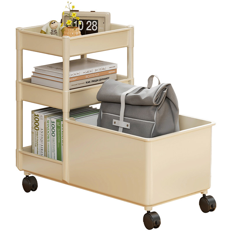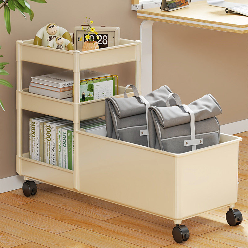 📚 教室桌下小推车书包置物架多功能放书柜学生课桌书立架带轮可移动书架书包箱办公桌工位文件收纳架分层整理架