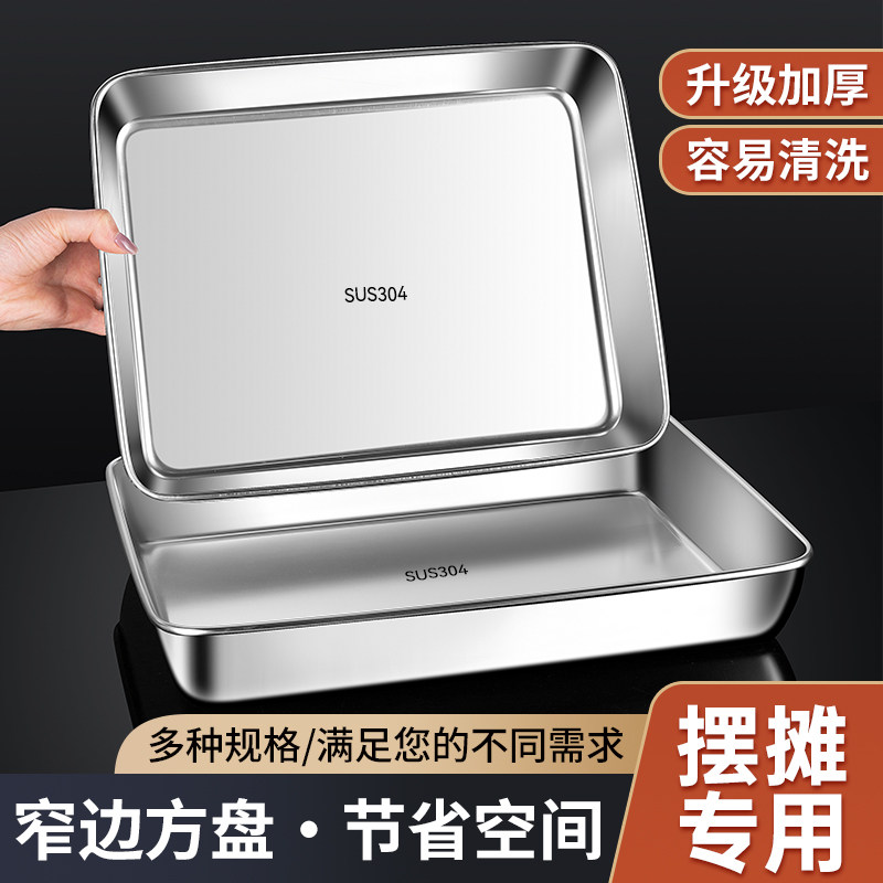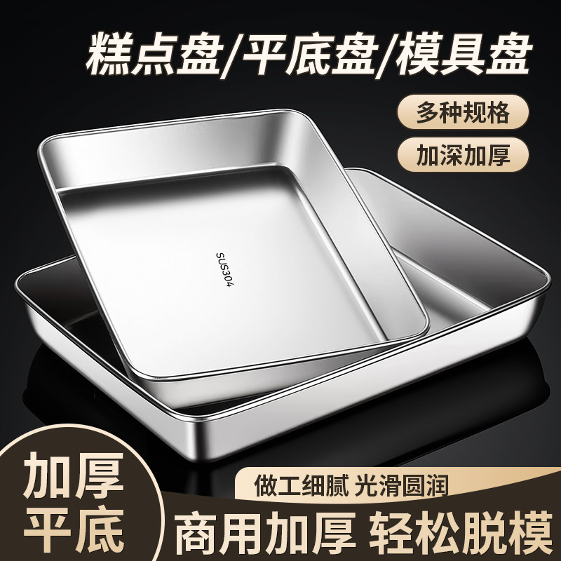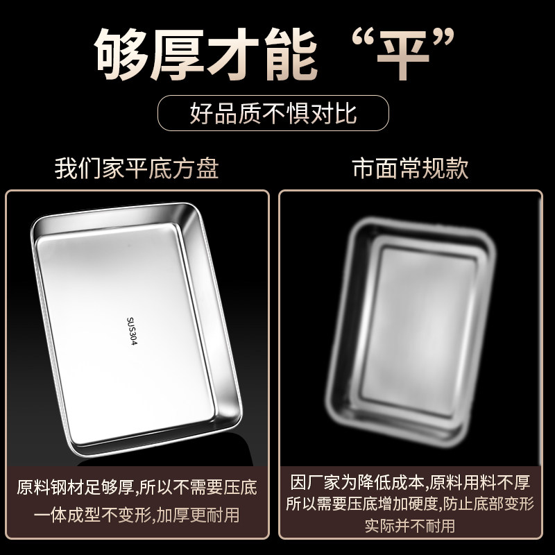 📚 加厚不锈钢304食品级方盘凉菜盘托盘蒸糕盘商用多用盘纯平底方盆