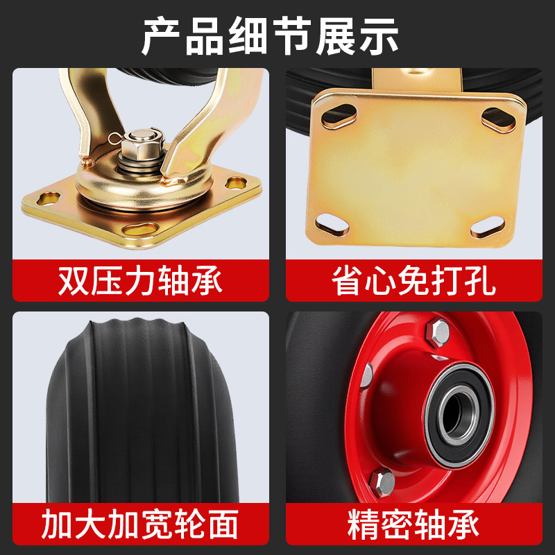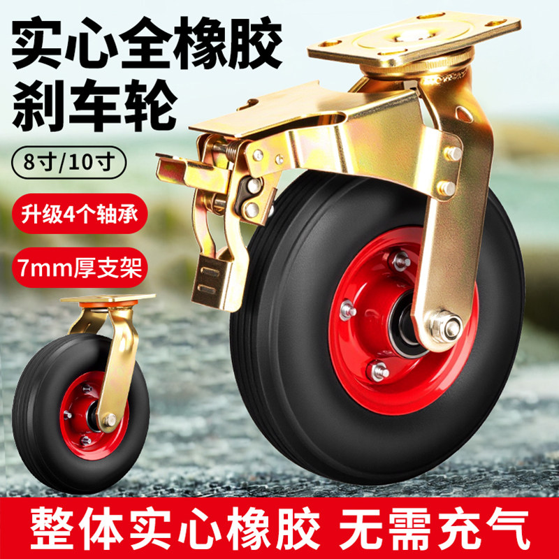 📚 8寸10寸橡胶实心万向轮实心轮平板车轮推车轮拖车轮重型万向脚轮