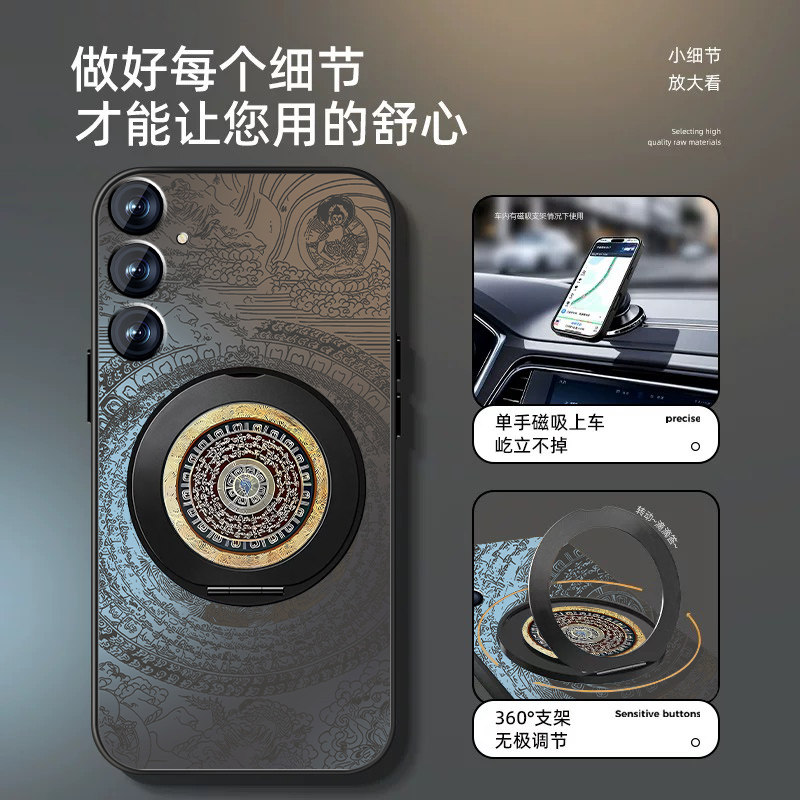 📚 适用三星s24手机壳s22ultra招财罗盘s23+新款S24FE磨砂套s20防摔GalaxyS21磁吸支架s10/s9/s8note8全包男外壳