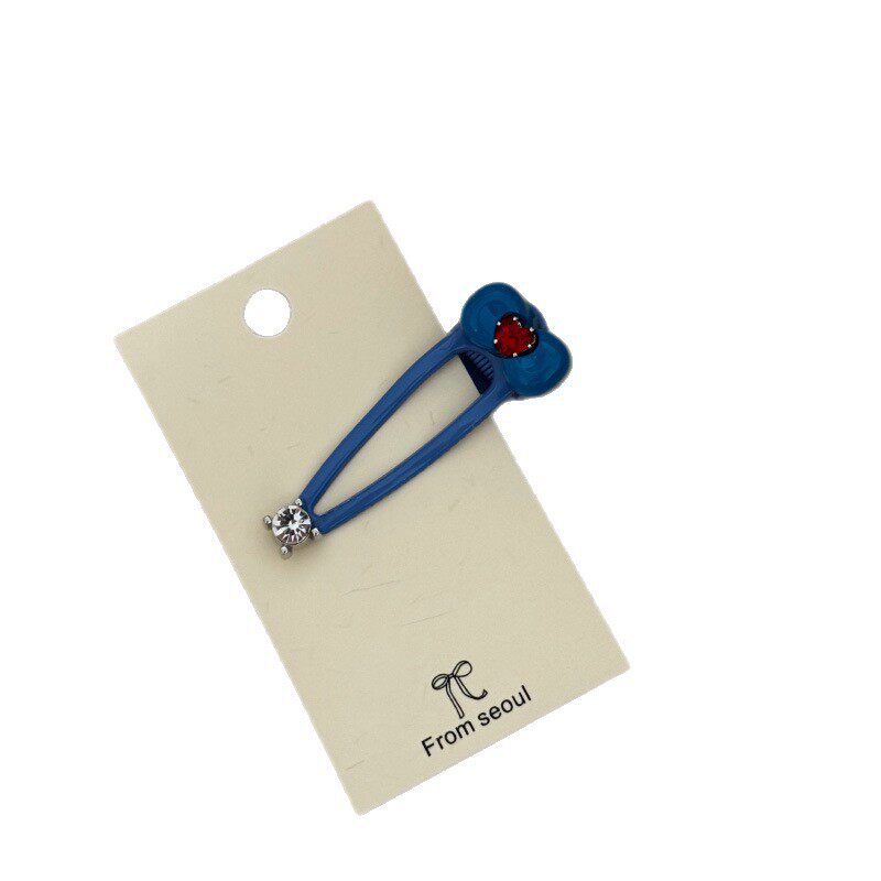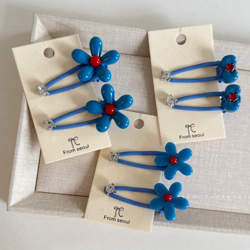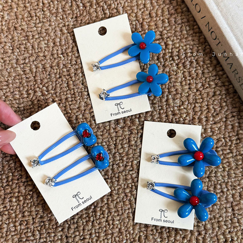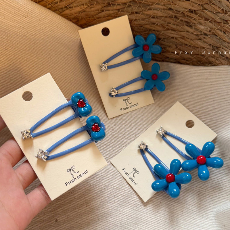📚 韩国新款天空蓝花水钻发夹设计感不伤发刘海侧边发卡发饰女