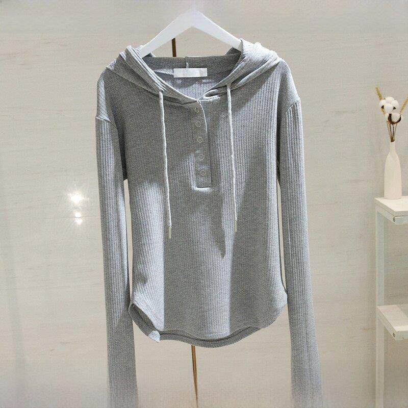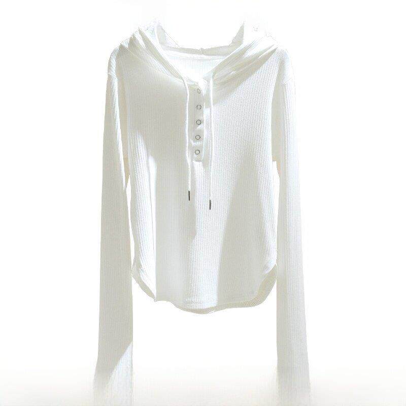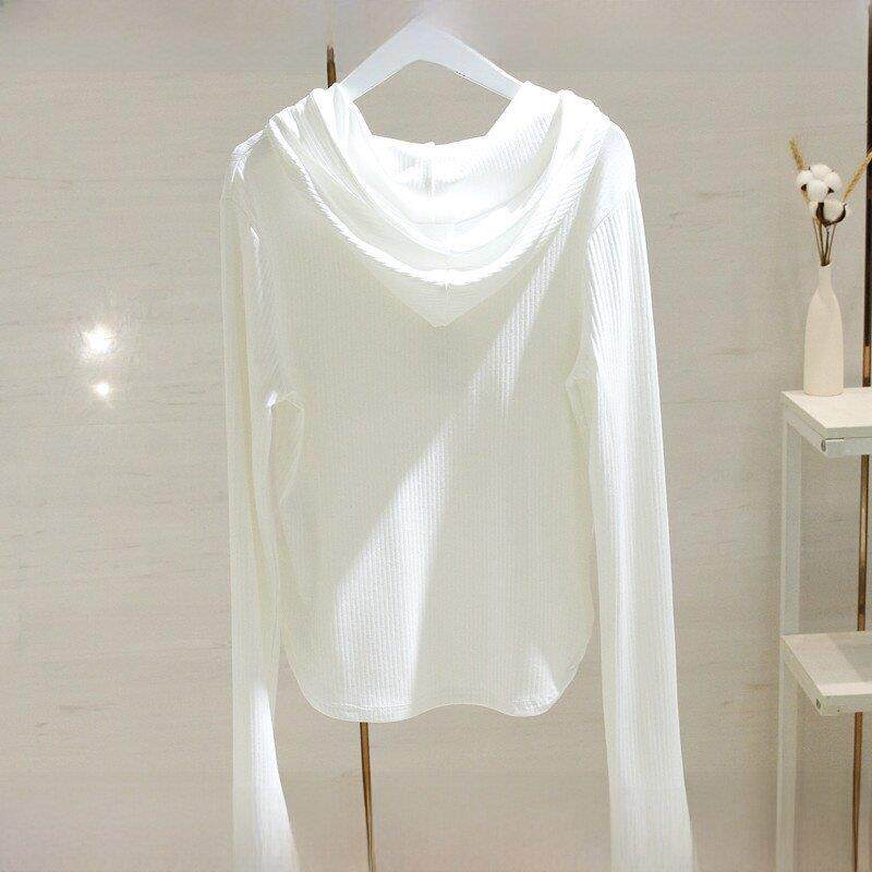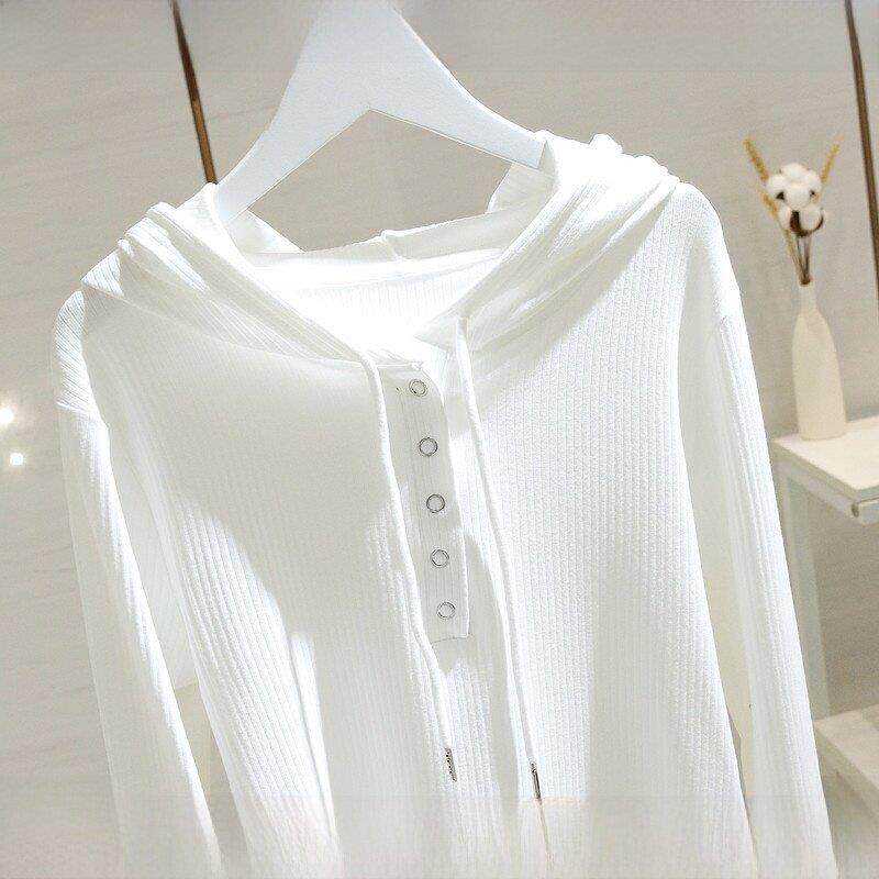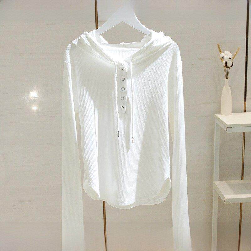88¥ CZ057 Zm3p5iBhVa7¥ https://m.tb.cn/h.iIggx30 白色拉绳连帽t恤妇女长袖2025年春天新的苗条合身的多功能设计底 --------------------- 【原售价】267元 【现售价】267元。
