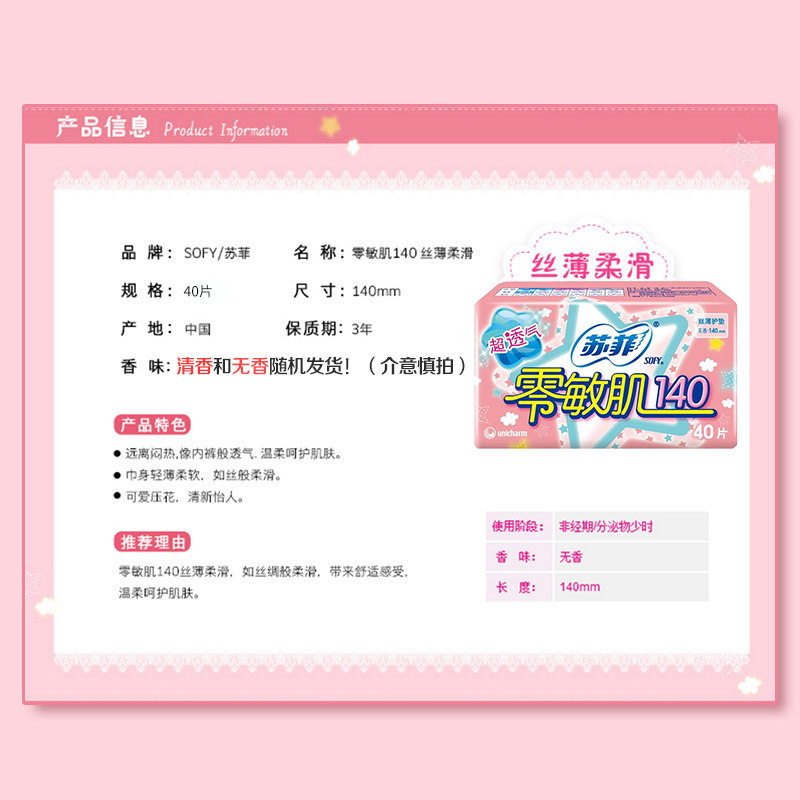 📚 苏菲护垫女 卫生巾棉柔日用超薄零敏肌柔滑透气孕妇专用140mm官网