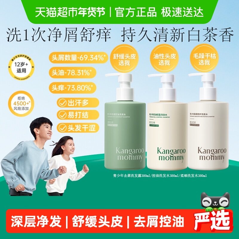 📚 袋鼠妈妈青少年专研青春期学生专用去屑柔顺控油洗发水改善毛躁