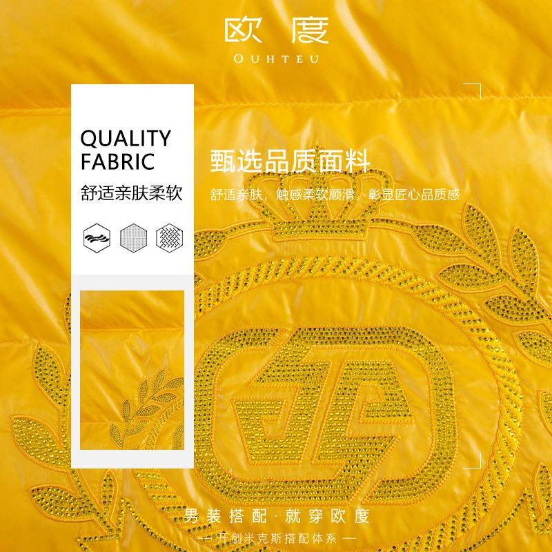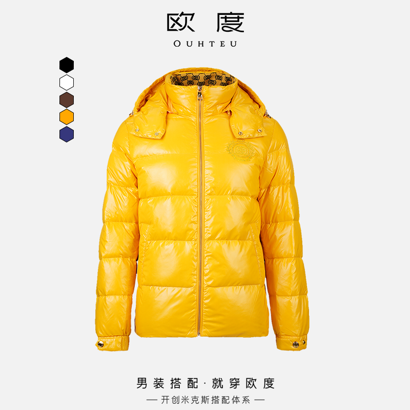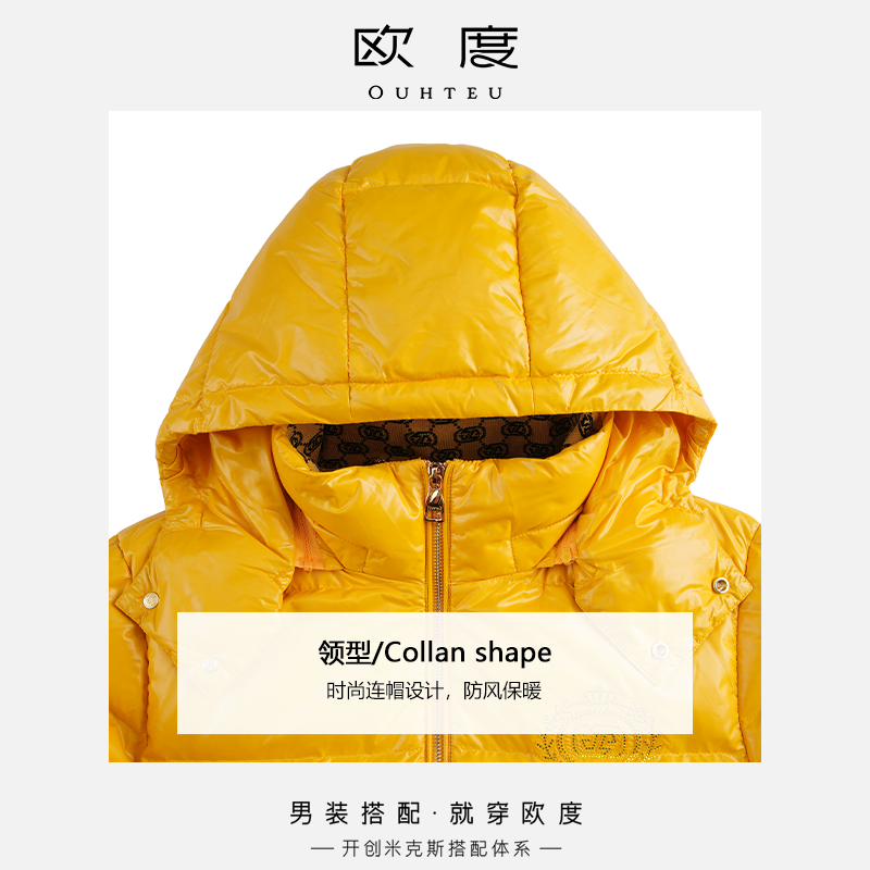 📚 OUHTEU/欧度男士羽绒服黄色可脱卸帽锦纶面料鸭绒潮流合体版冬季