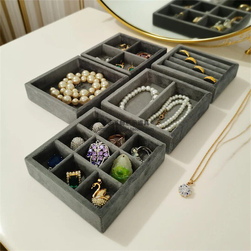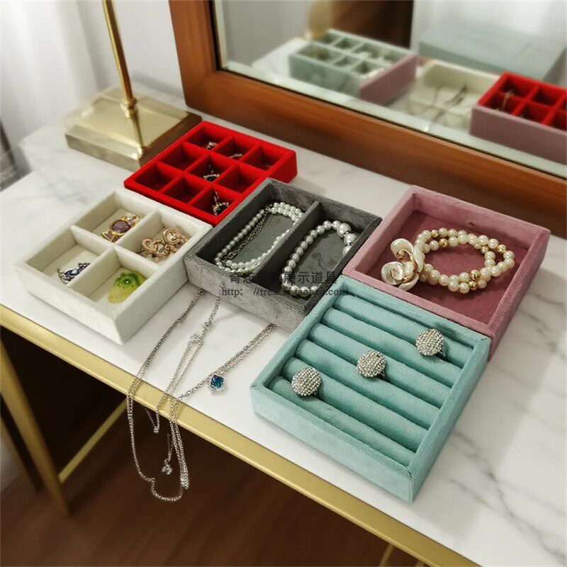 📚 珠宝首饰收纳小托盘耳钉展示绒布抽屉桌面多功能手镯戒指项链盘