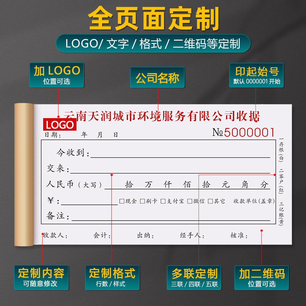 📚 【财务专用收据】收款收据三联定制公司会计单栏多栏现金票据单位费用报销单据手写出纳预支领付款凭证单二联