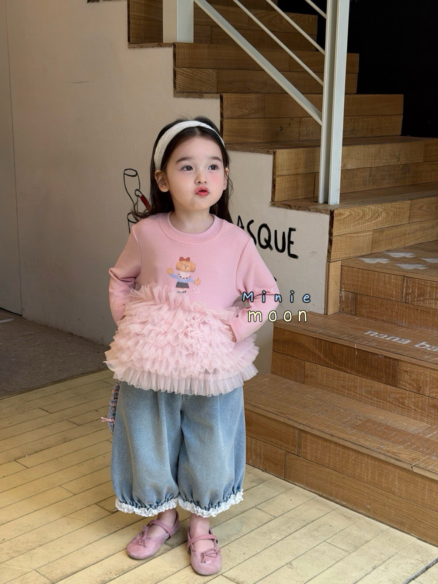 📚 凡妈童装26春夏女童小童韩系蛋糕网纱T恤花边灯笼牛仔九分裤洋气