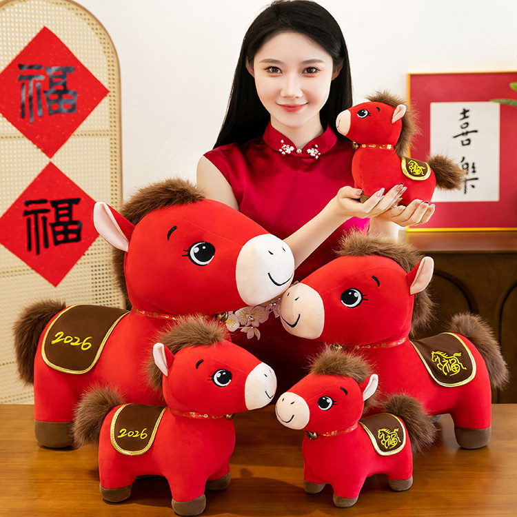 📚 毛绒玩具马年货吉祥生肖福大号红马到成功小马玩偶公仔儿童礼物