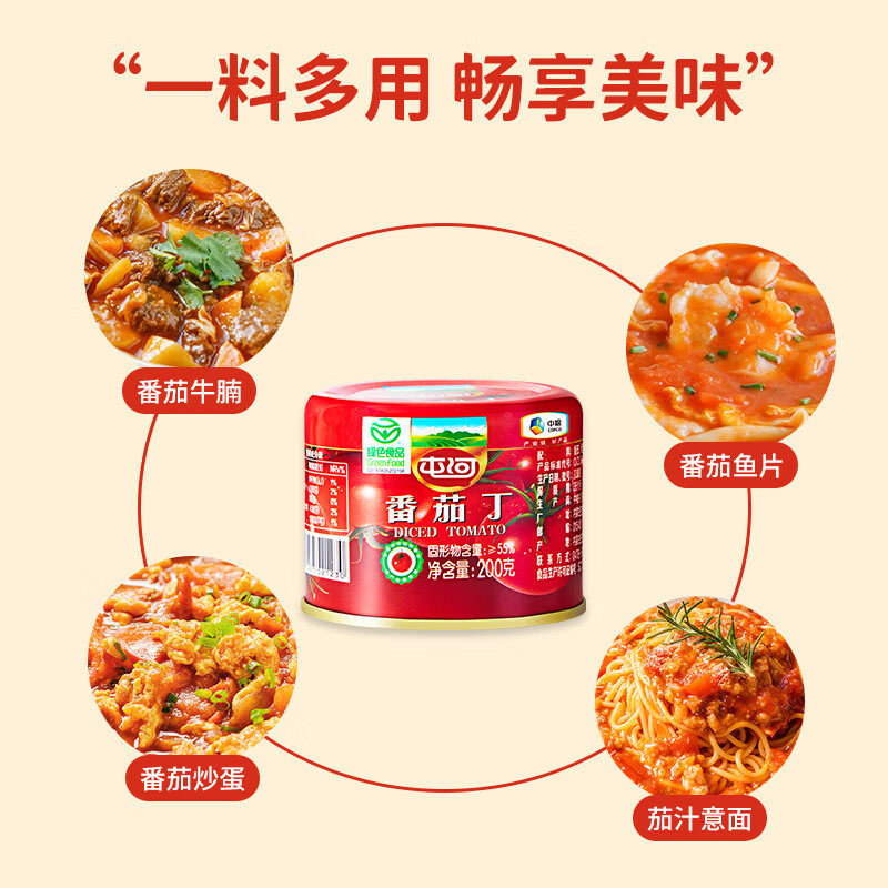 📚 中粮屯河新疆番茄丁200g西红柿罐头0添加剂去皮新鲜罐头去皮切丁