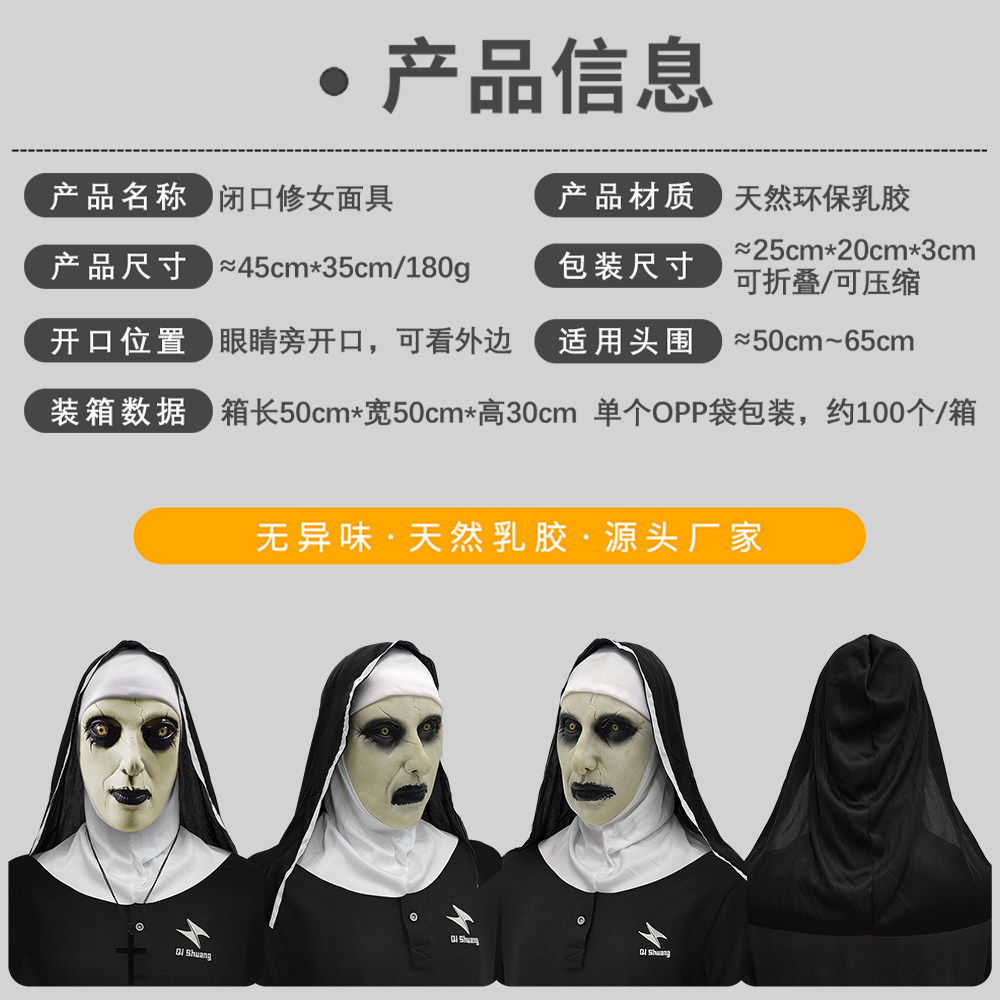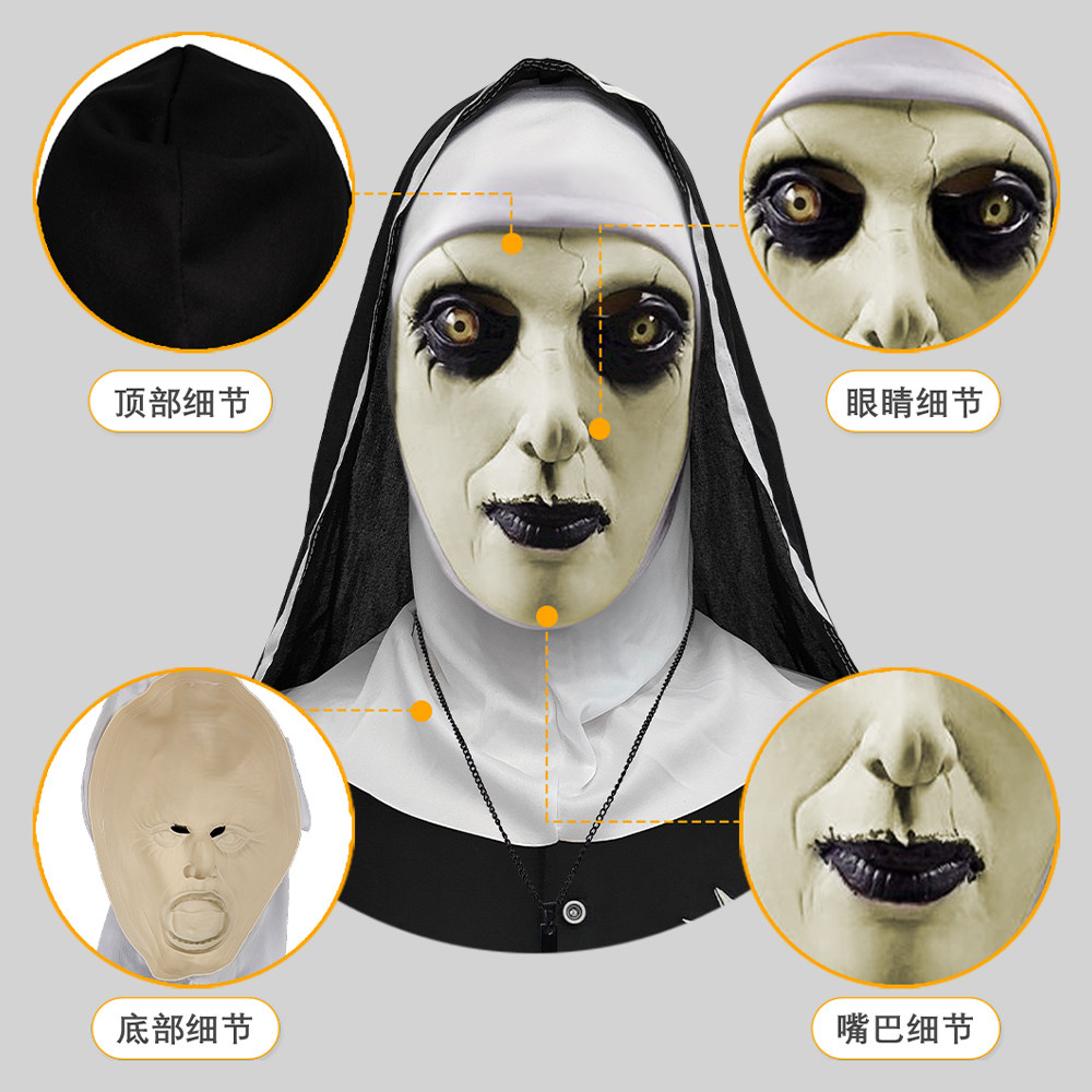 📚 惊声尖叫闭口修女面具化妆舞会恐怖鬼脸头套万圣节日派对恶搞道具