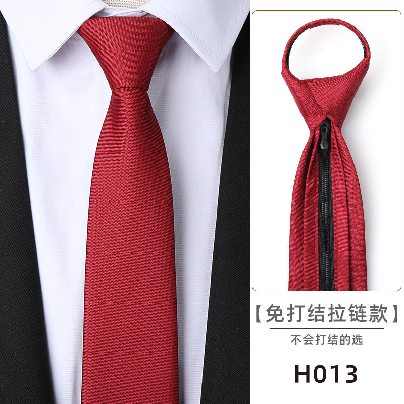📚 H013商务正装酒红色免打拉链式条纹新郎伴郎结婚婚礼懒人免打领带